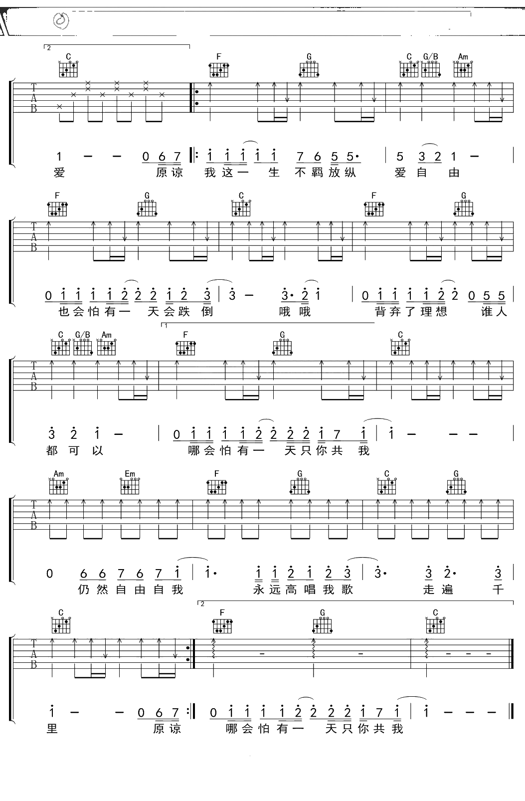 Beyond《海阔天空》吉他谱 C调弹唱六线谱吉他谱