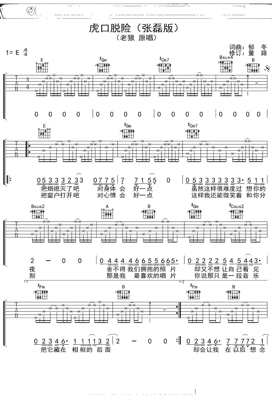 老狼《虎口脱险》吉他谱 E调弹唱六线谱吉他谱