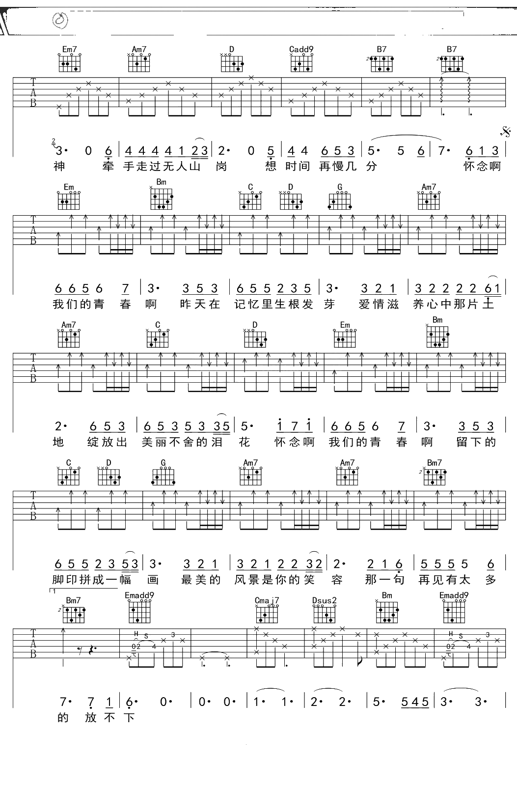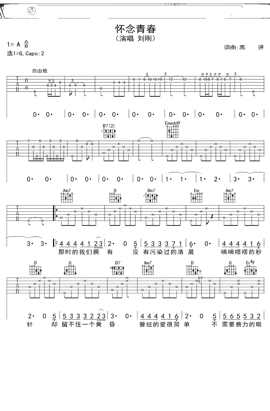 刘刚《怀念青春》吉他谱 G调弹唱六线谱