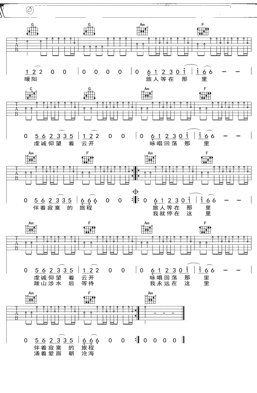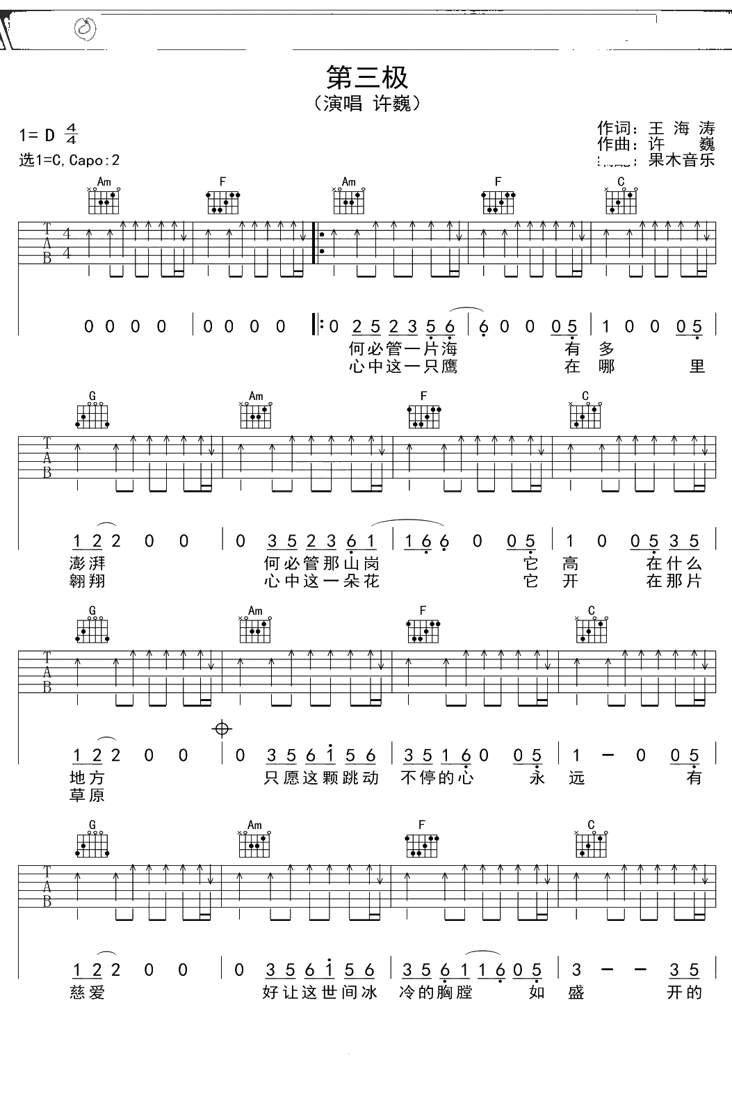 许巍《第三极》吉他谱 C调弹唱六线谱吉他谱