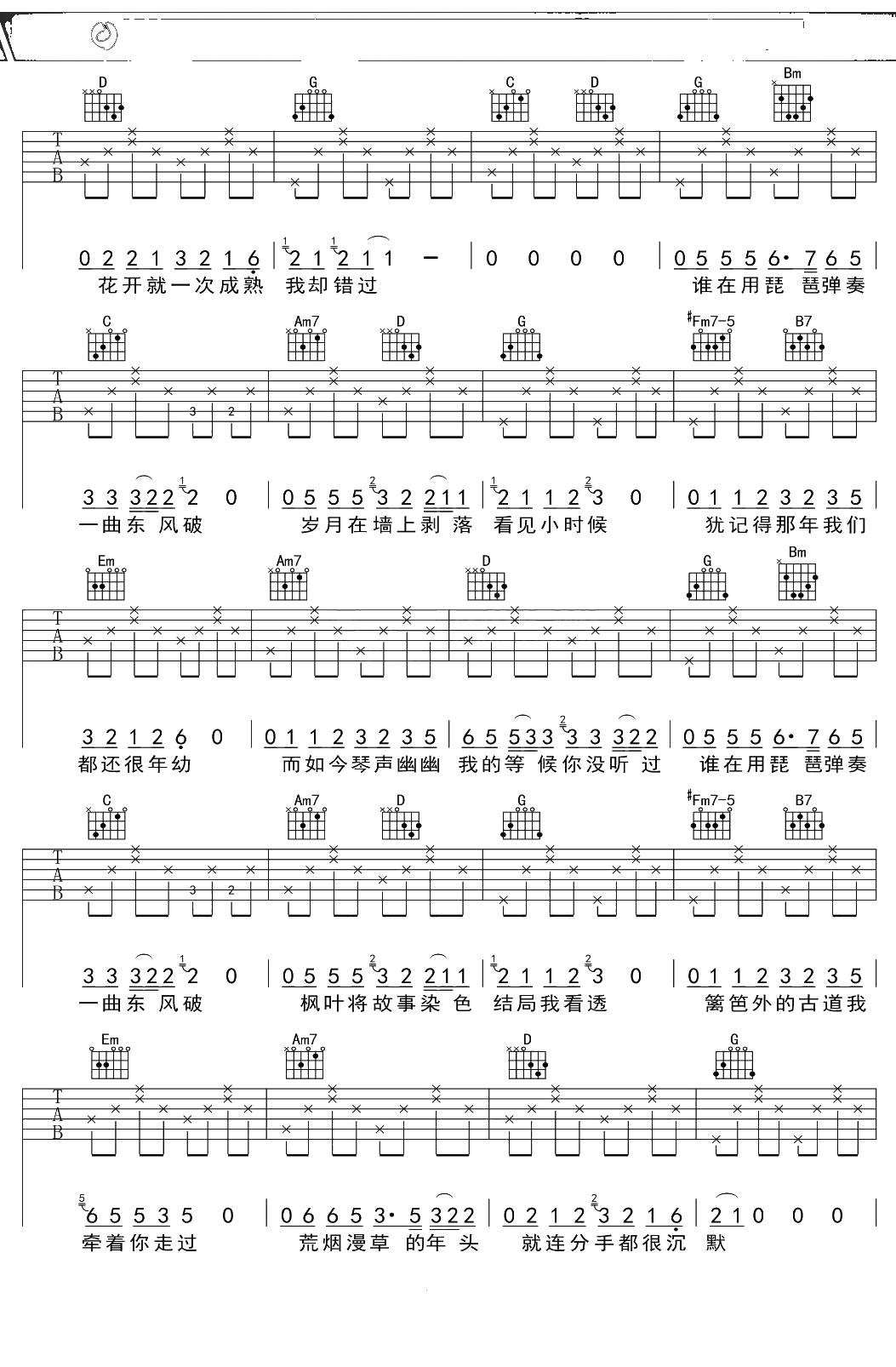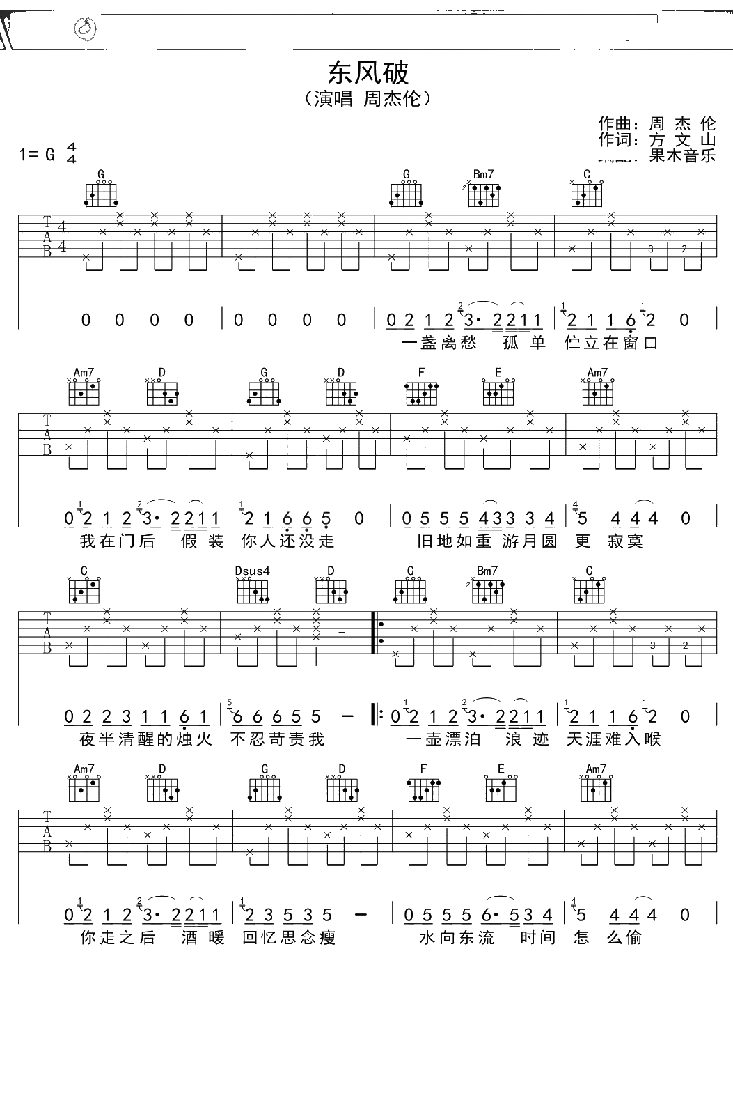 周杰伦《东风破》吉他谱 G调弹唱六线谱