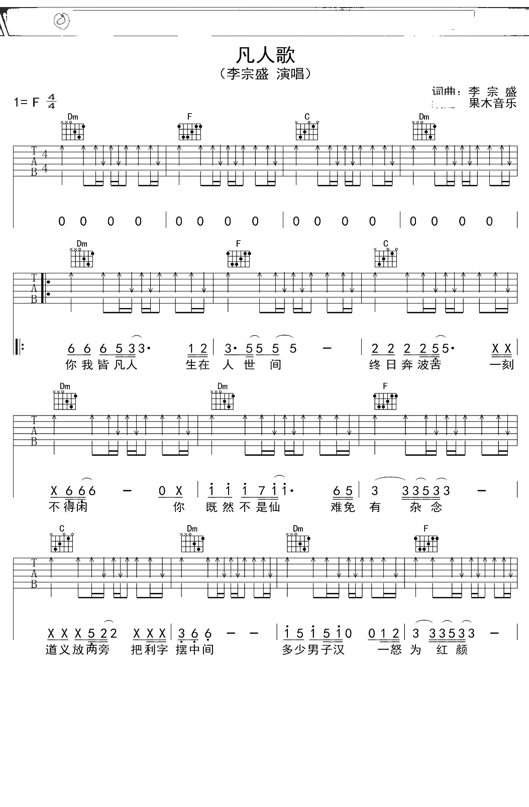 李宗盛《张敬轩》吉他谱 F调弹唱六线谱吉他谱