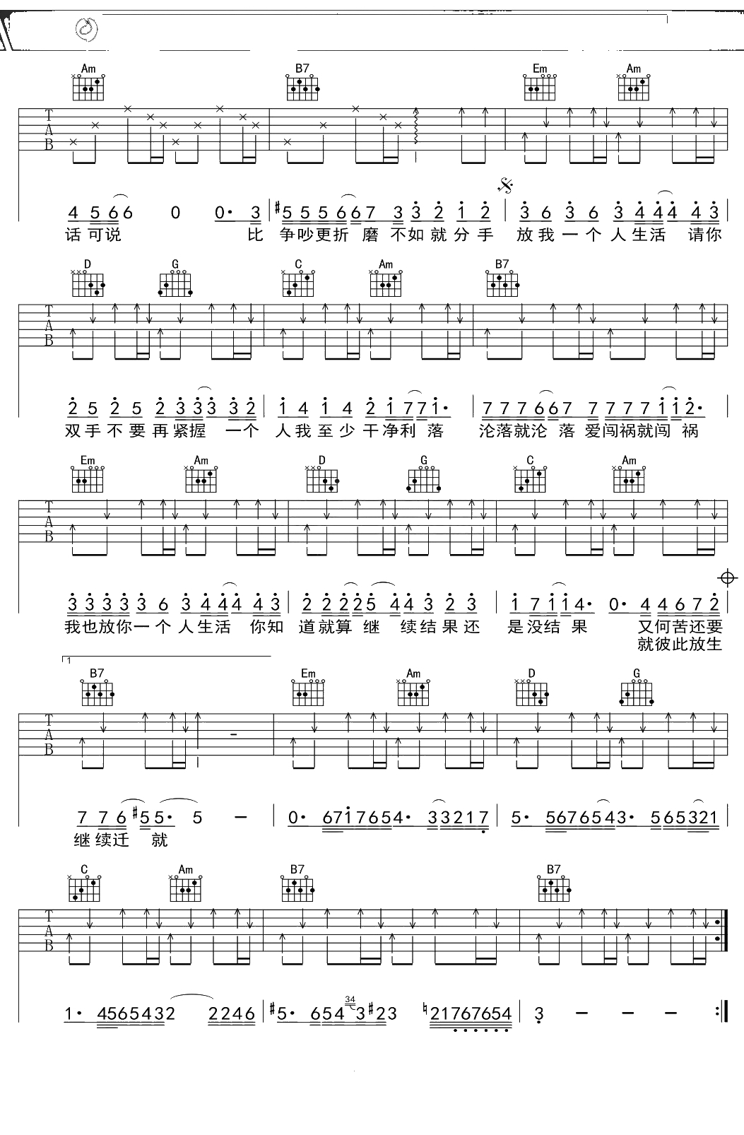 范逸臣《放生》吉他谱 G调弹唱六线谱吉他谱