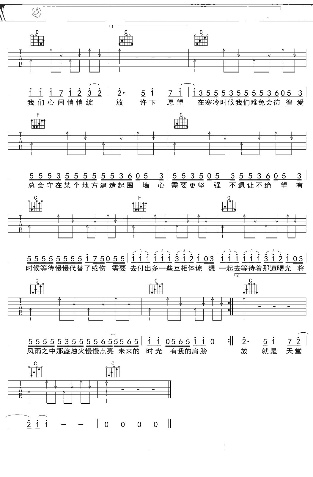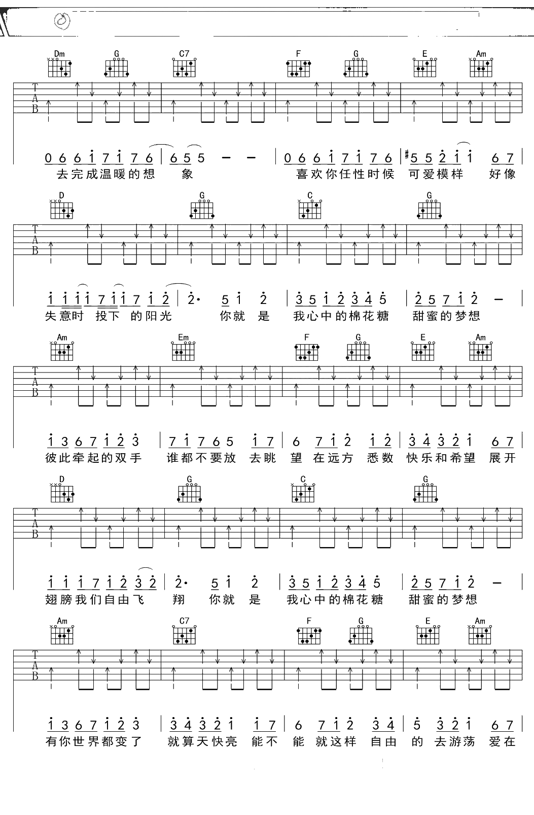 至上励合《棉花糖》吉他谱 C调弹唱六线谱