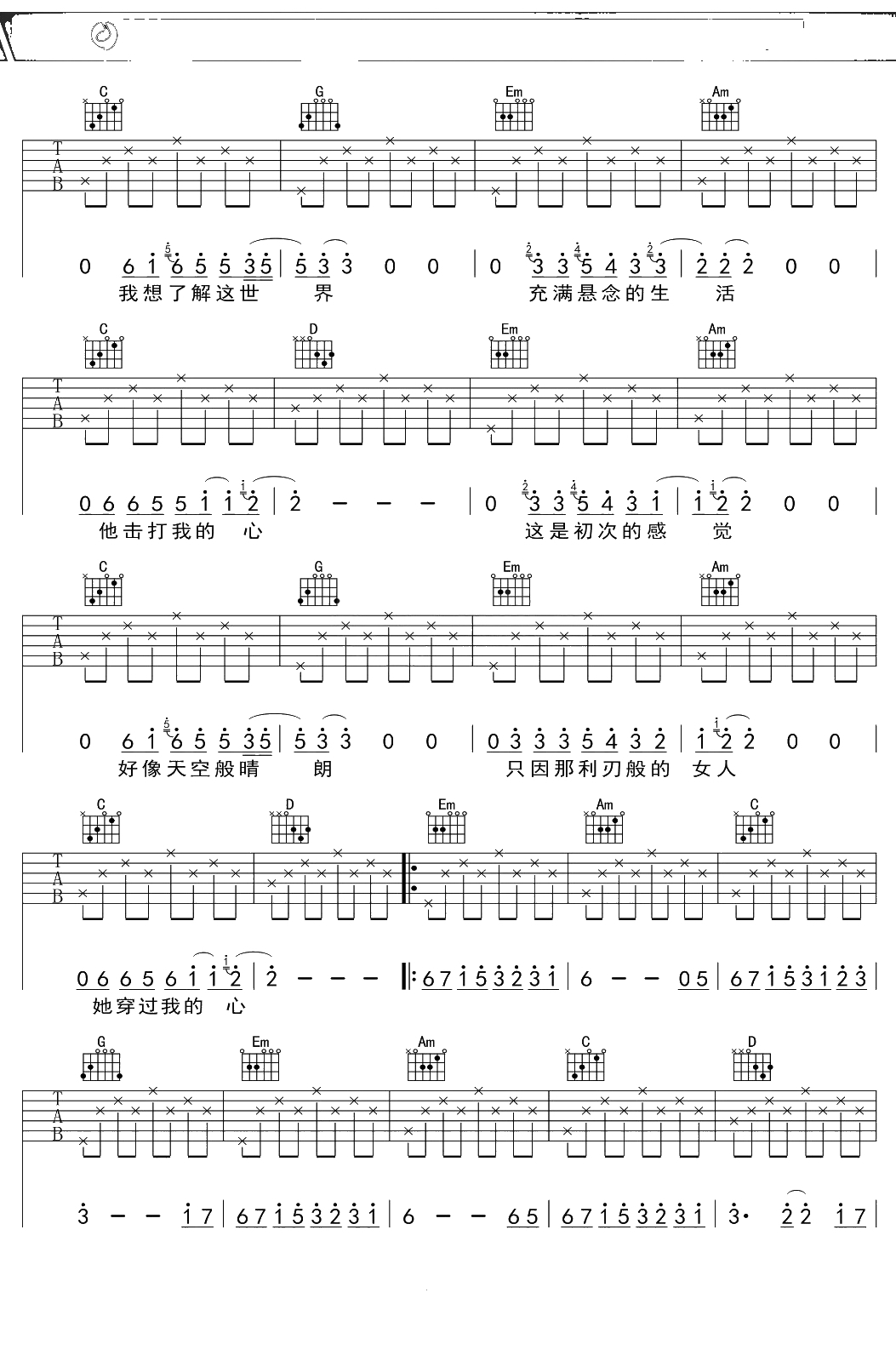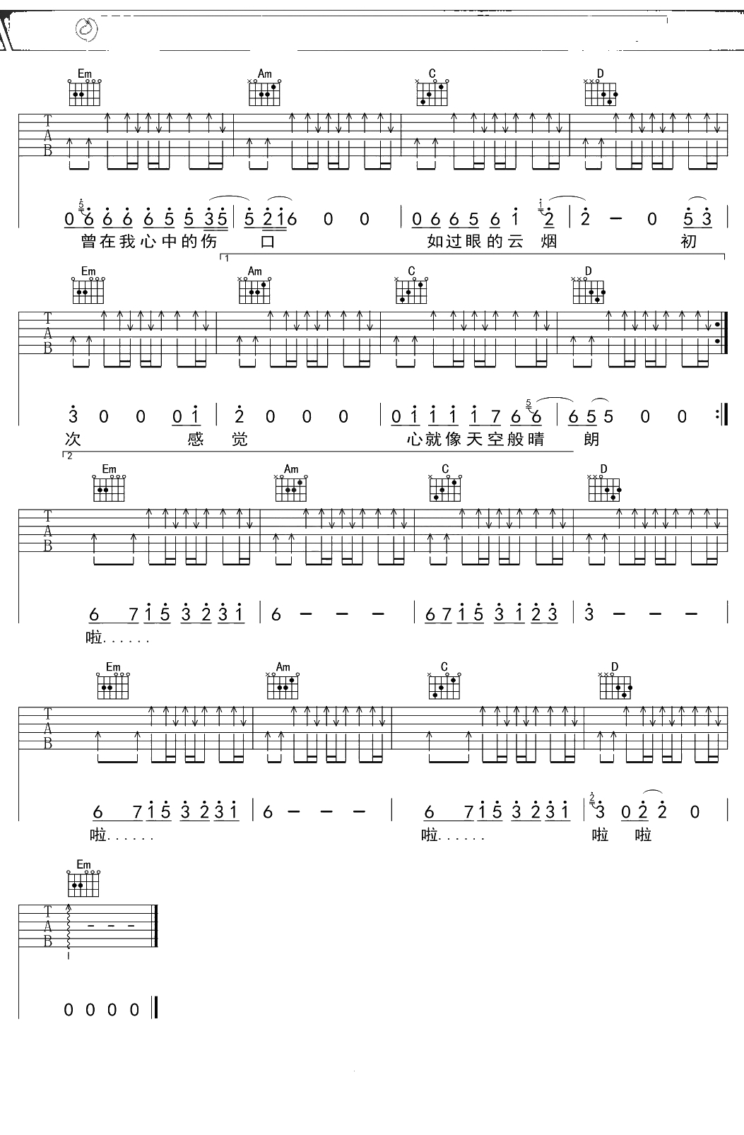许巍《晴朗》吉他谱 G调弹唱六线谱吉他谱
