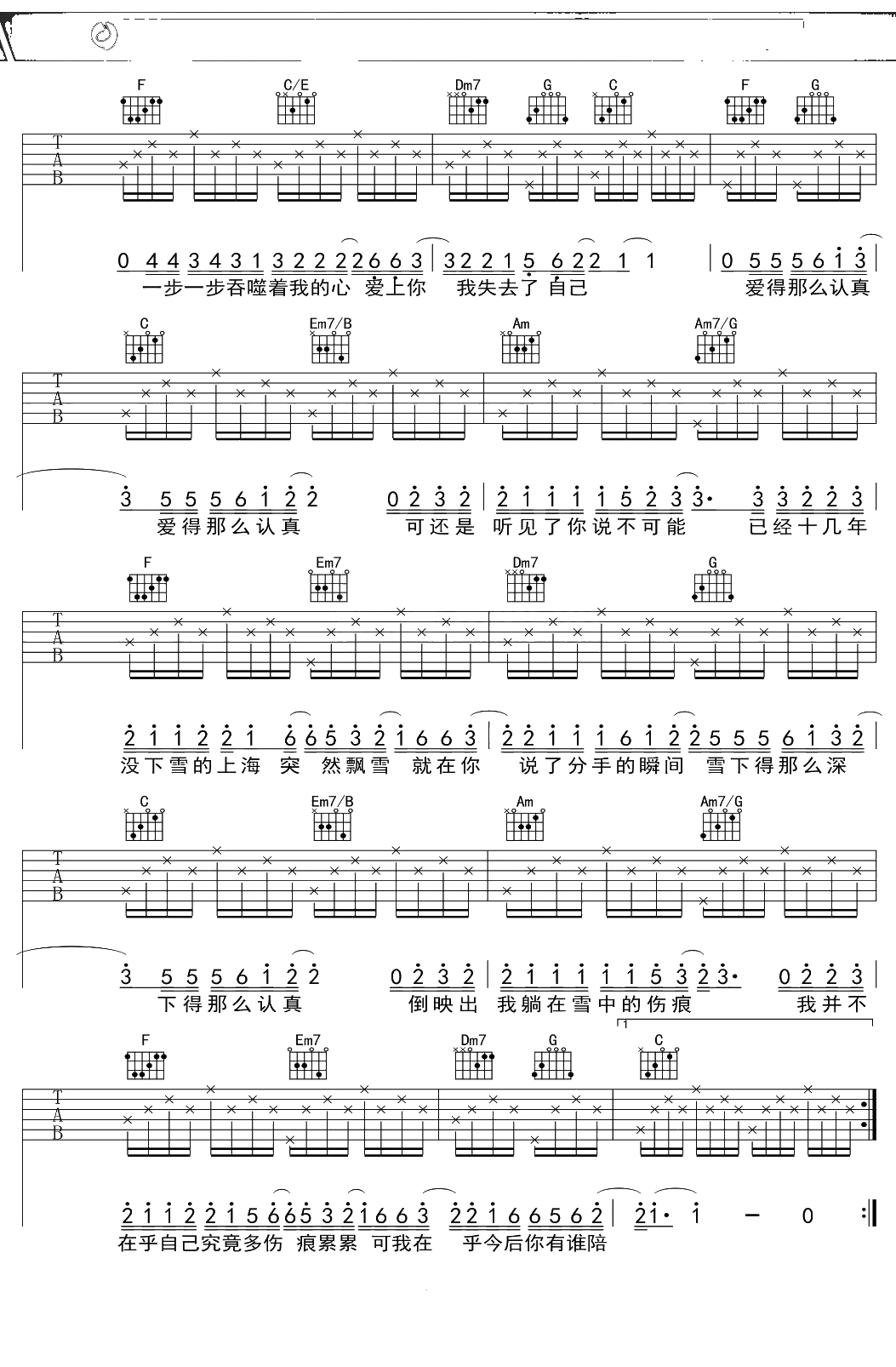 薛之谦《认真的雪》吉他谱 C调弹唱六线谱吉他谱