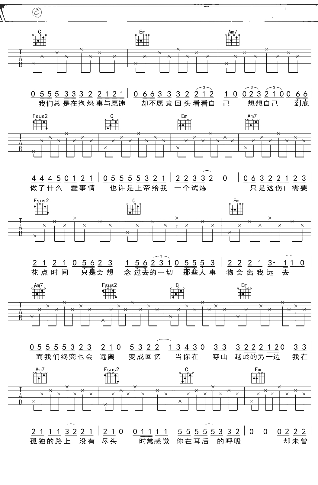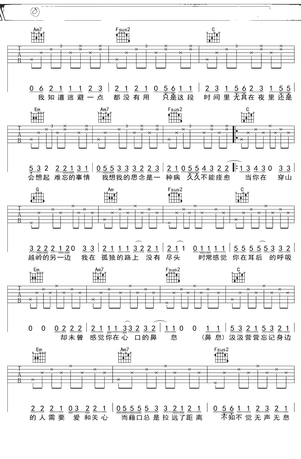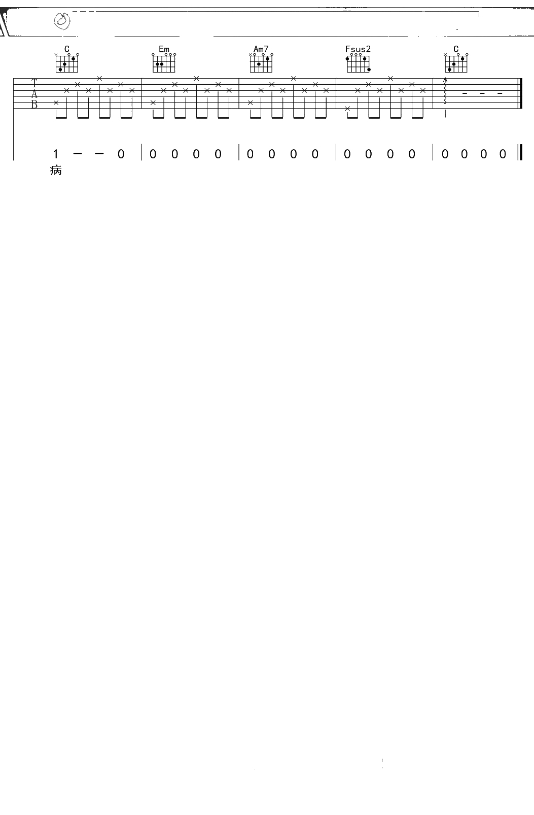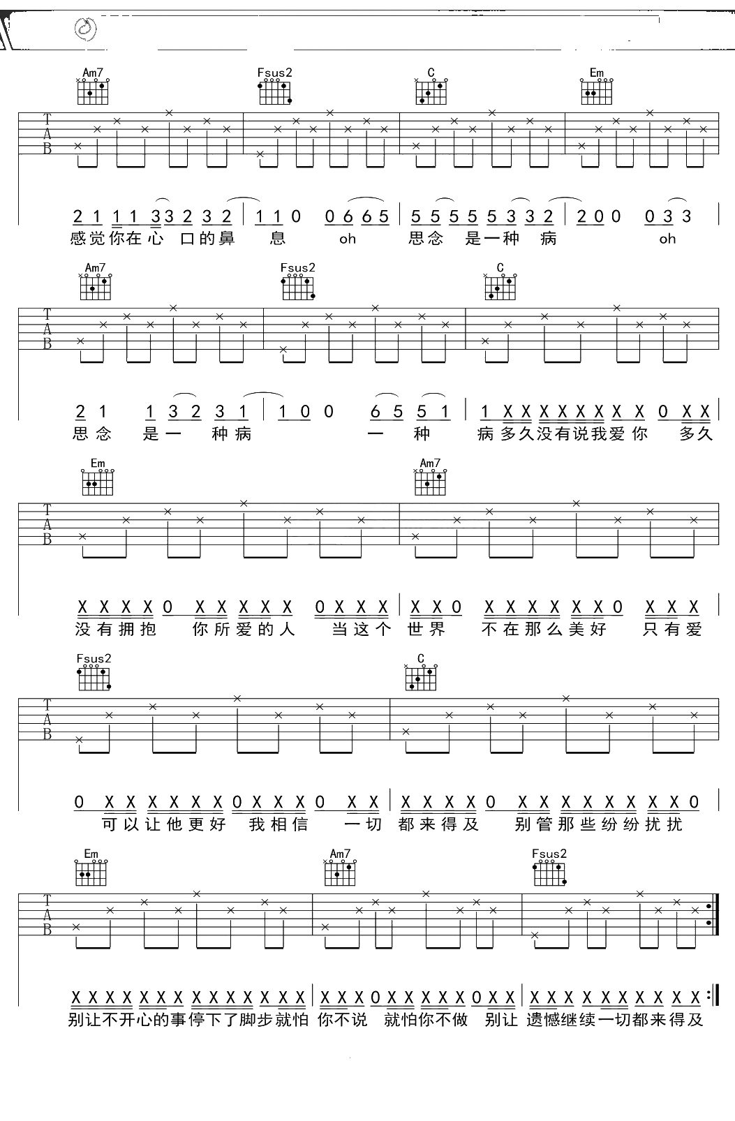 张震岳《思念是一种病》吉他谱 C调弹唱六线谱吉他谱