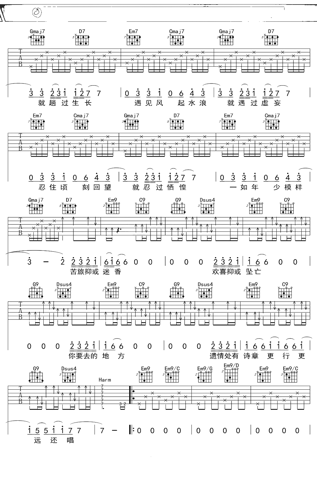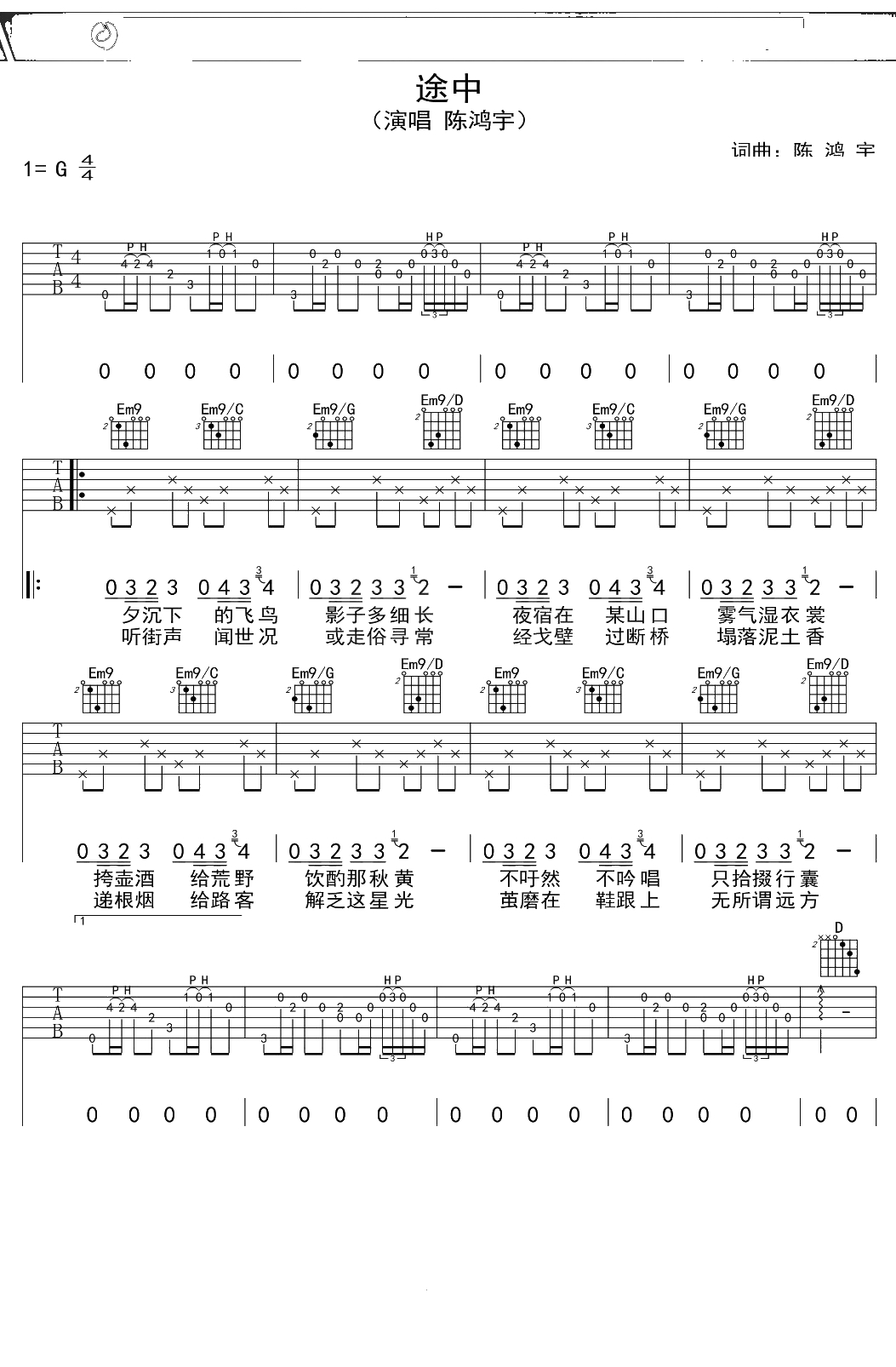 陈鸿宇《途中》吉他谱 G调弹唱六线谱