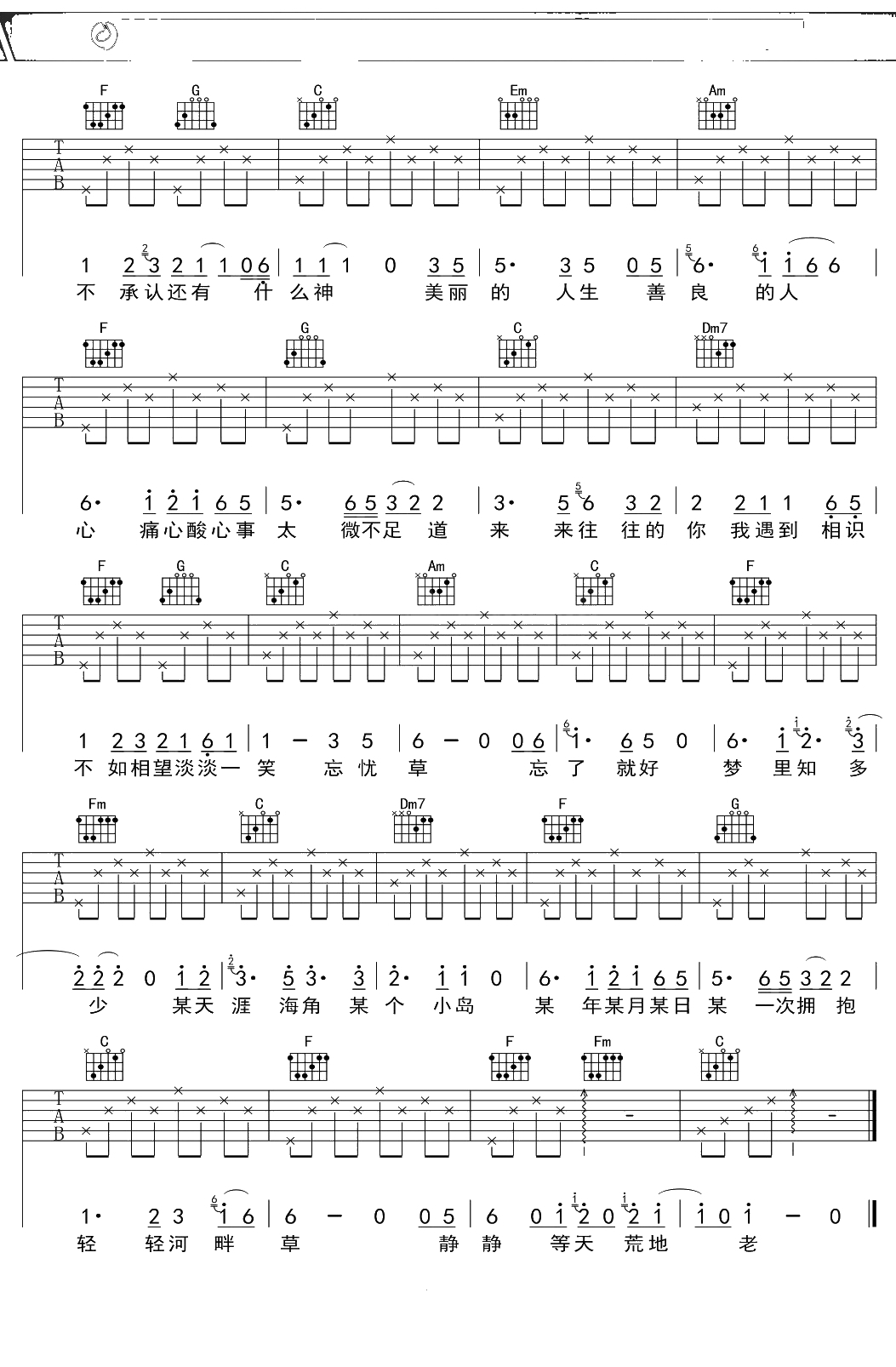 周华健《忘忧草》吉他谱 C调弹唱六线谱