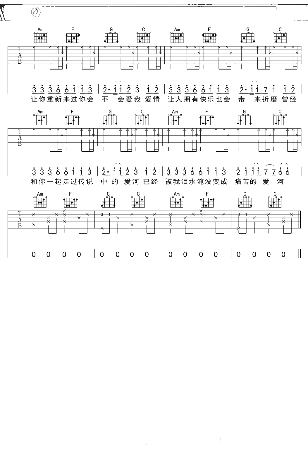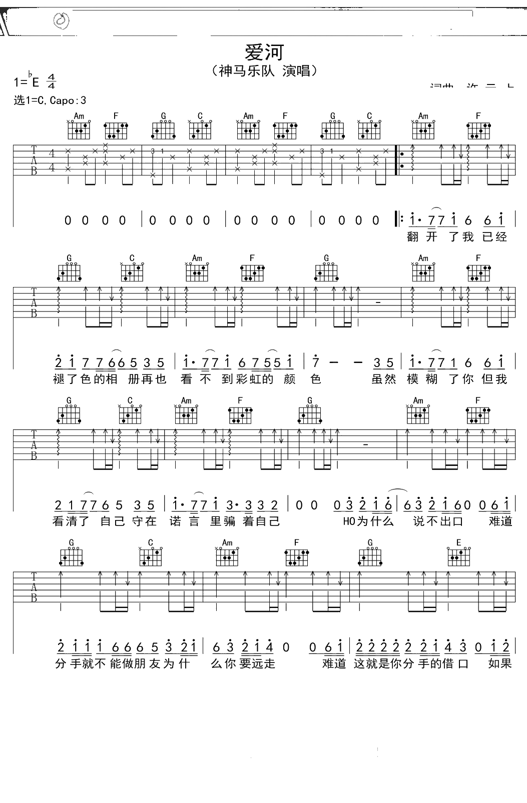 神马乐队《爱河》吉他谱 C调弹唱六线谱吉他谱