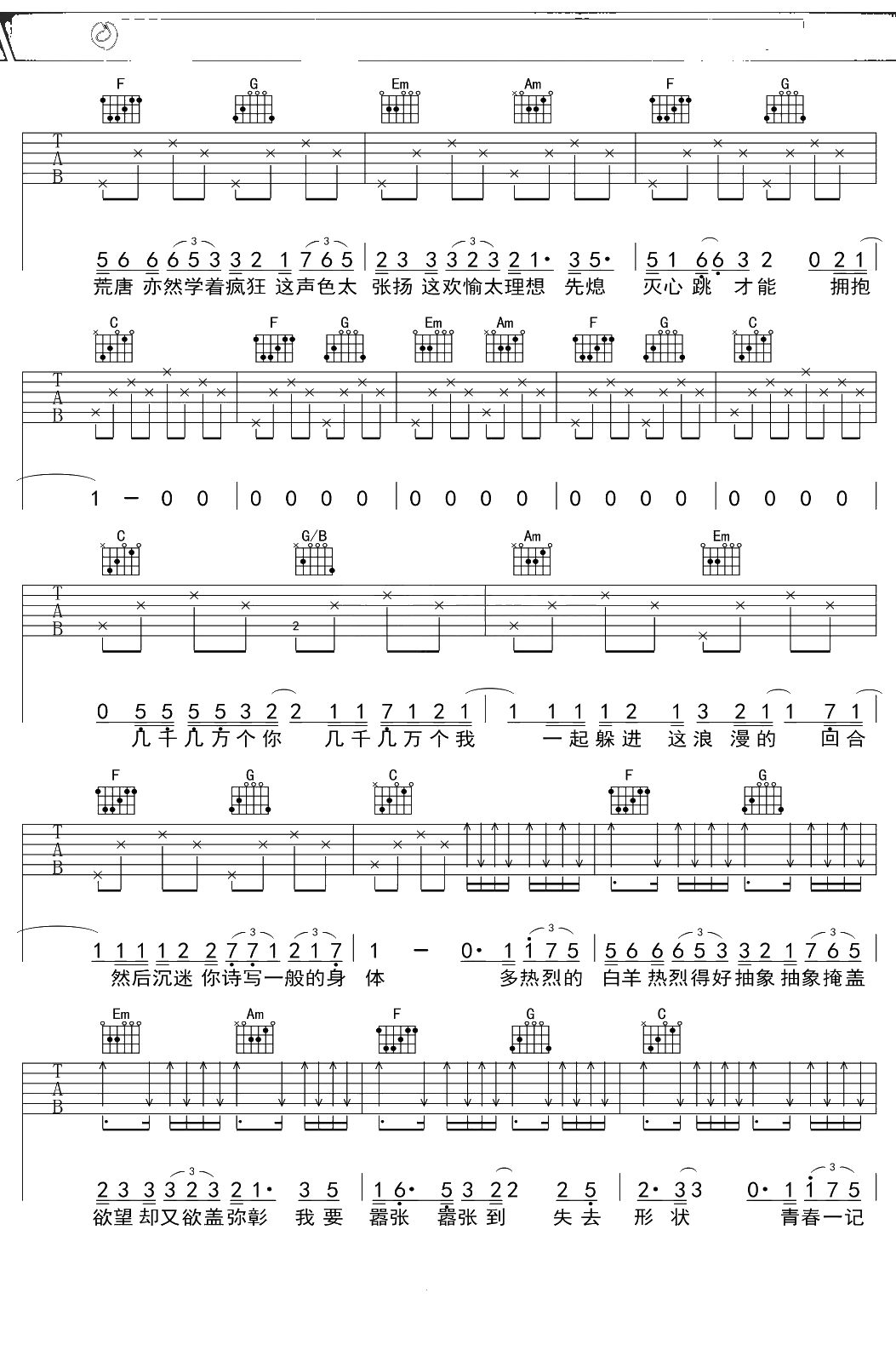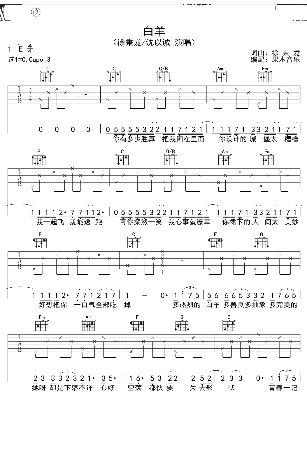 《白羊》吉他谱 徐秉龙/沈以诚 C调弹唱六线谱吉他谱