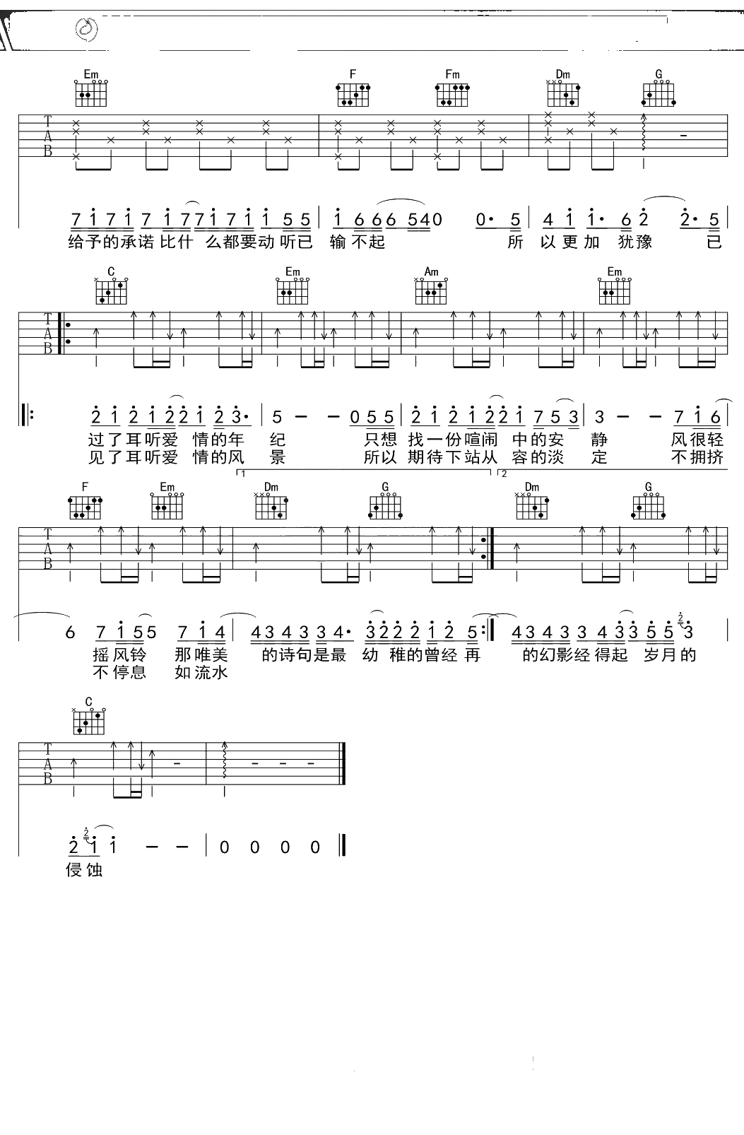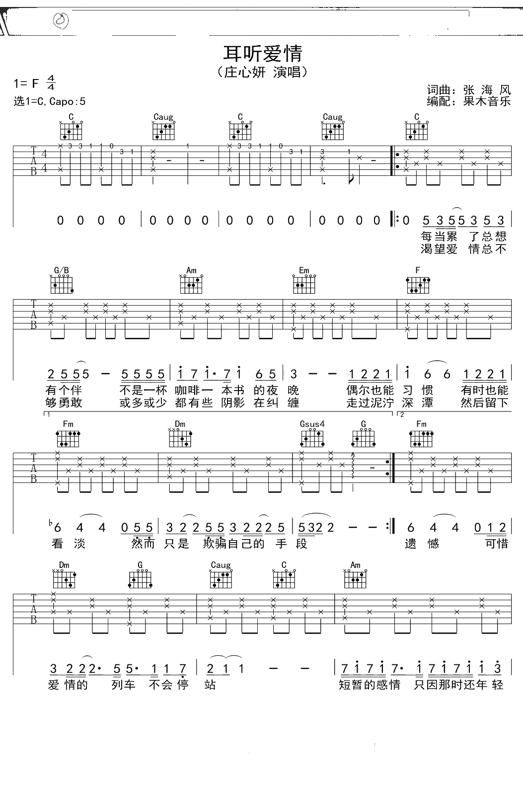 庄心妍《耳听爱情》吉他谱 C调弹唱六线谱
