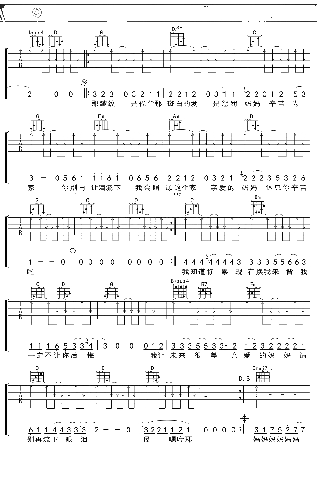 吴建豪《妈妈》吉他谱 G调弹唱六线谱