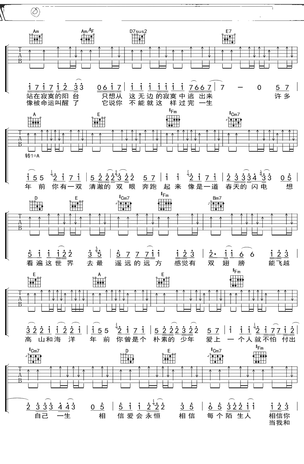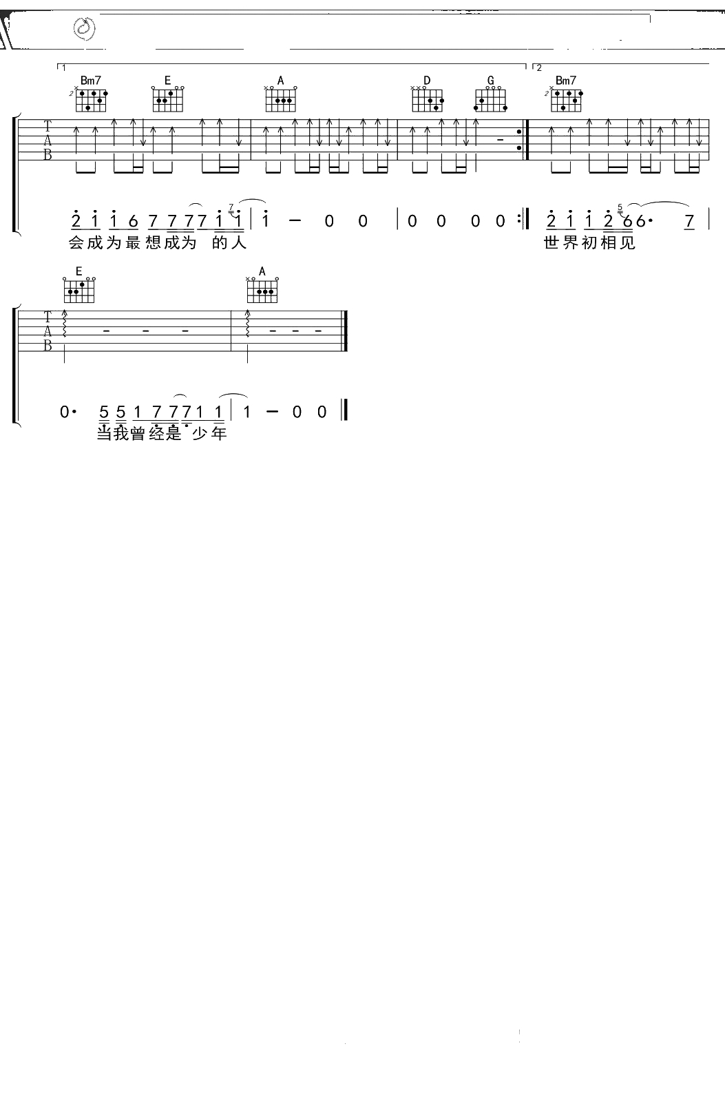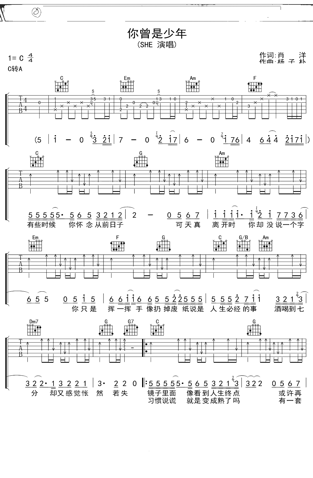SHE《你曾是少年》吉他谱 弹唱六线谱吉他谱