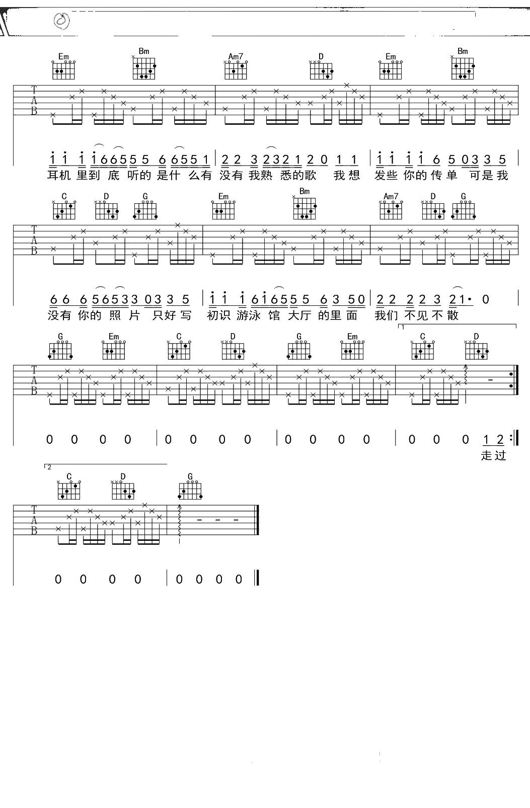 赵雷《十九岁时候的歌》吉他谱 G调弹唱六线谱