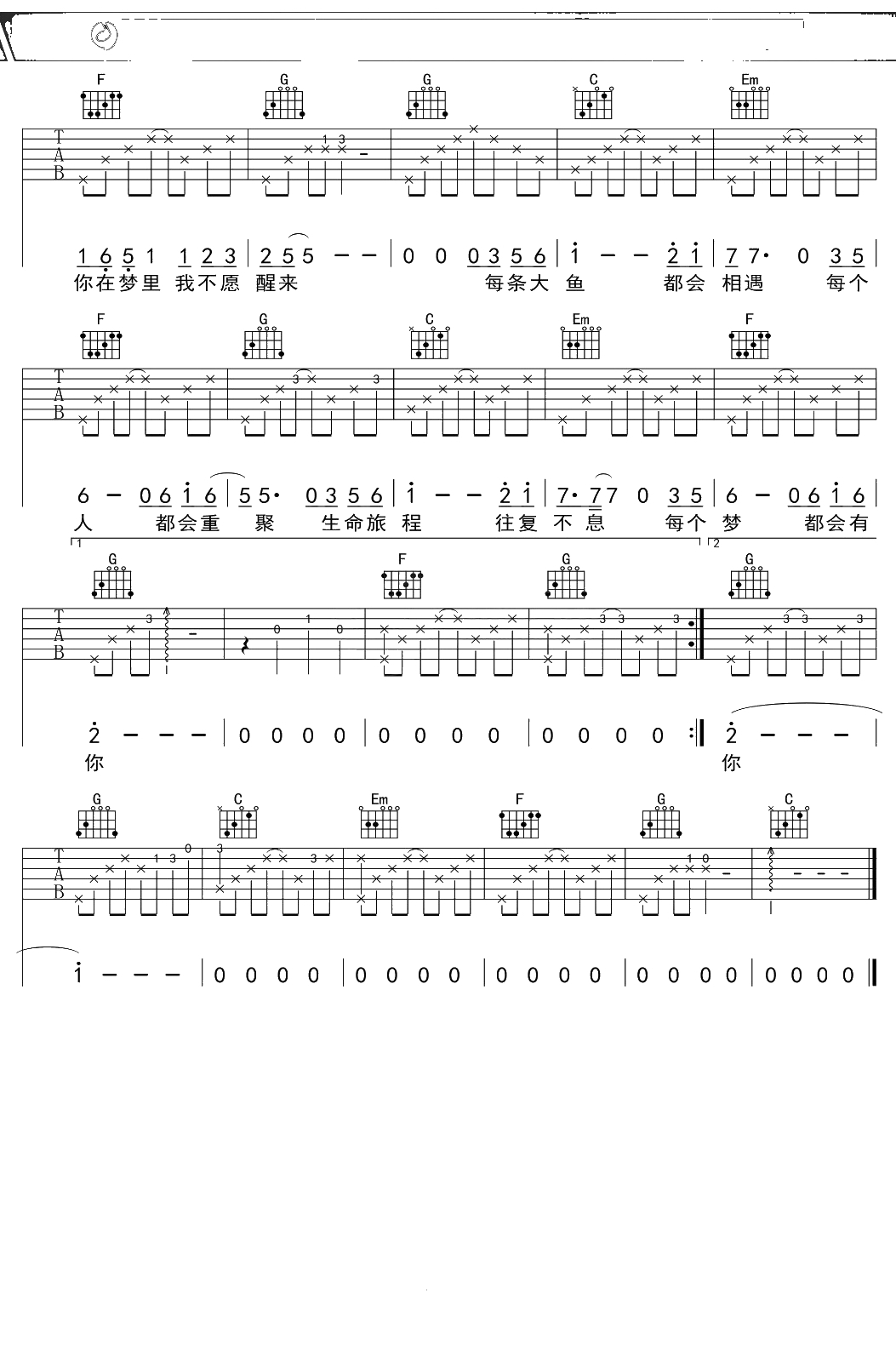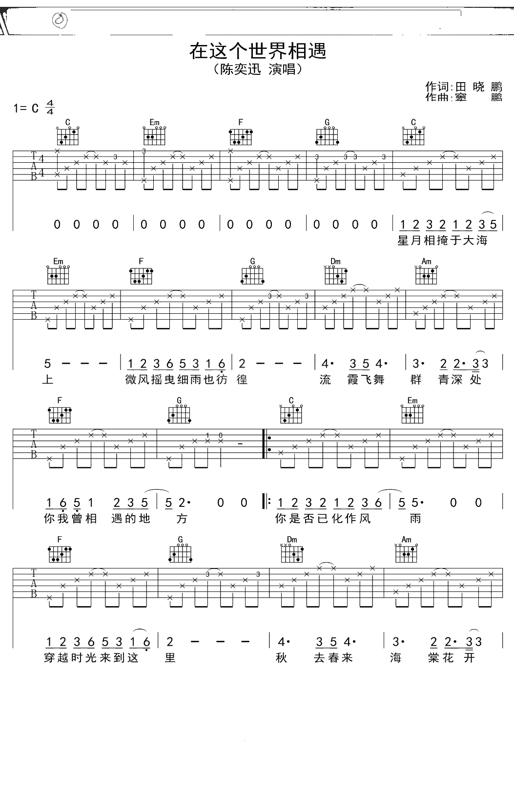 陈奕迅《在这个世界相遇》吉他谱 C调弹唱六线谱