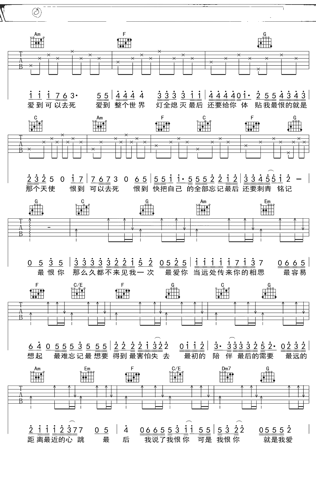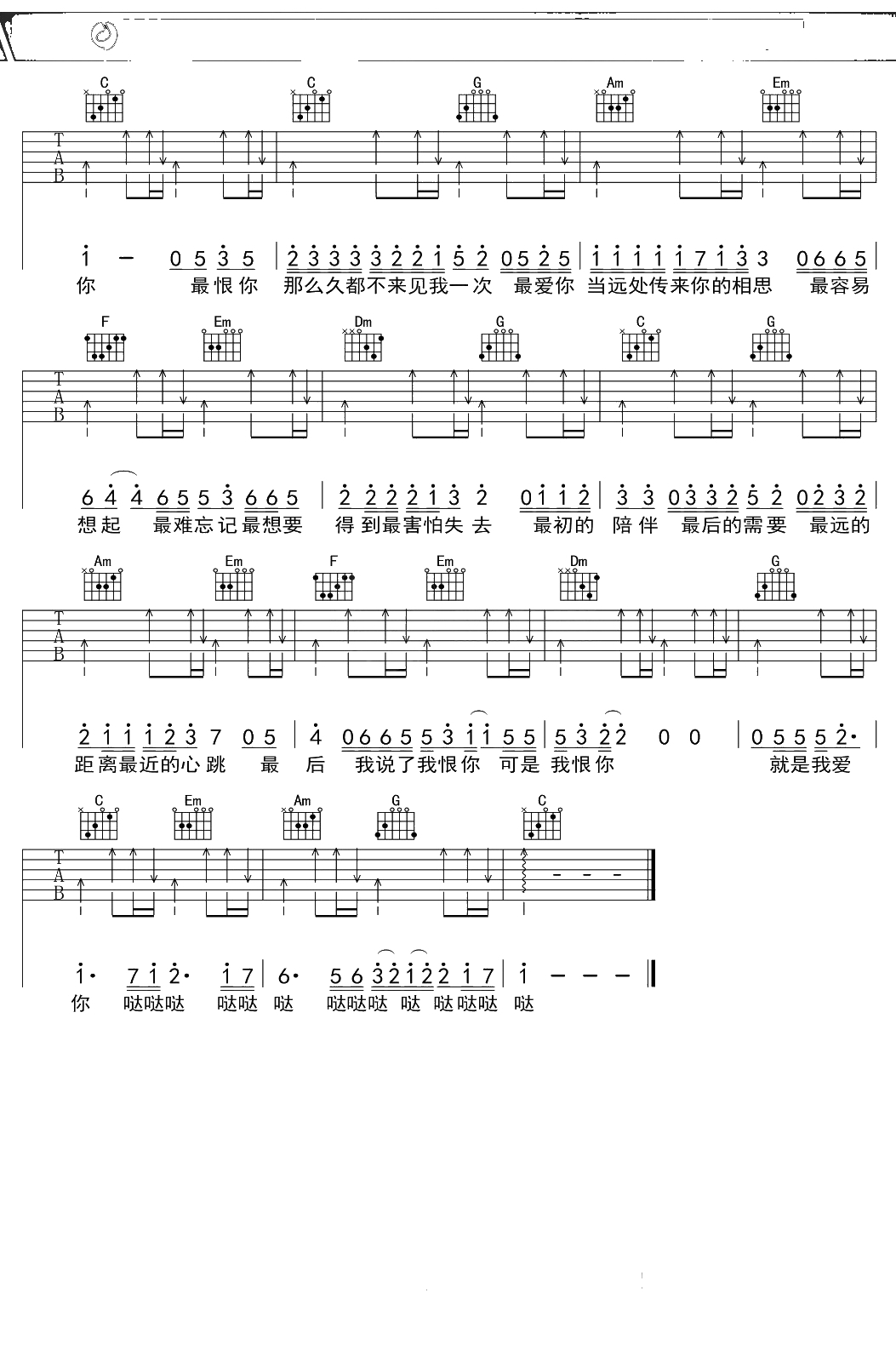 曾轶可《最天使》吉他谱 C调弹唱六线谱