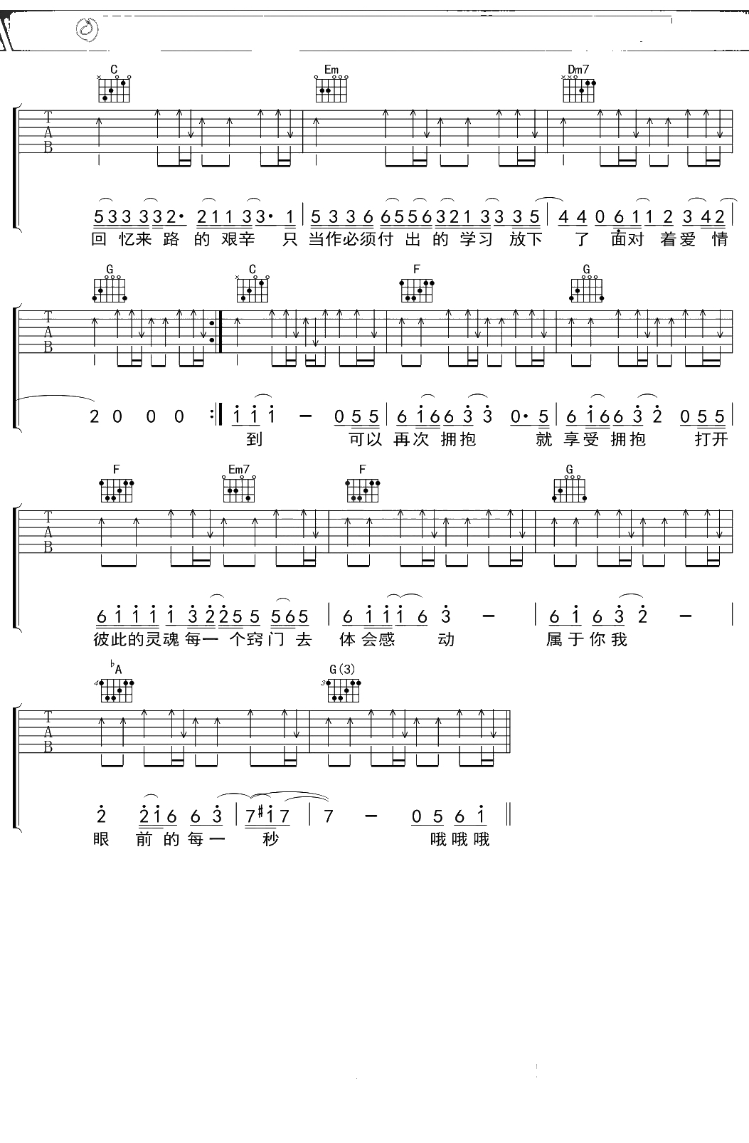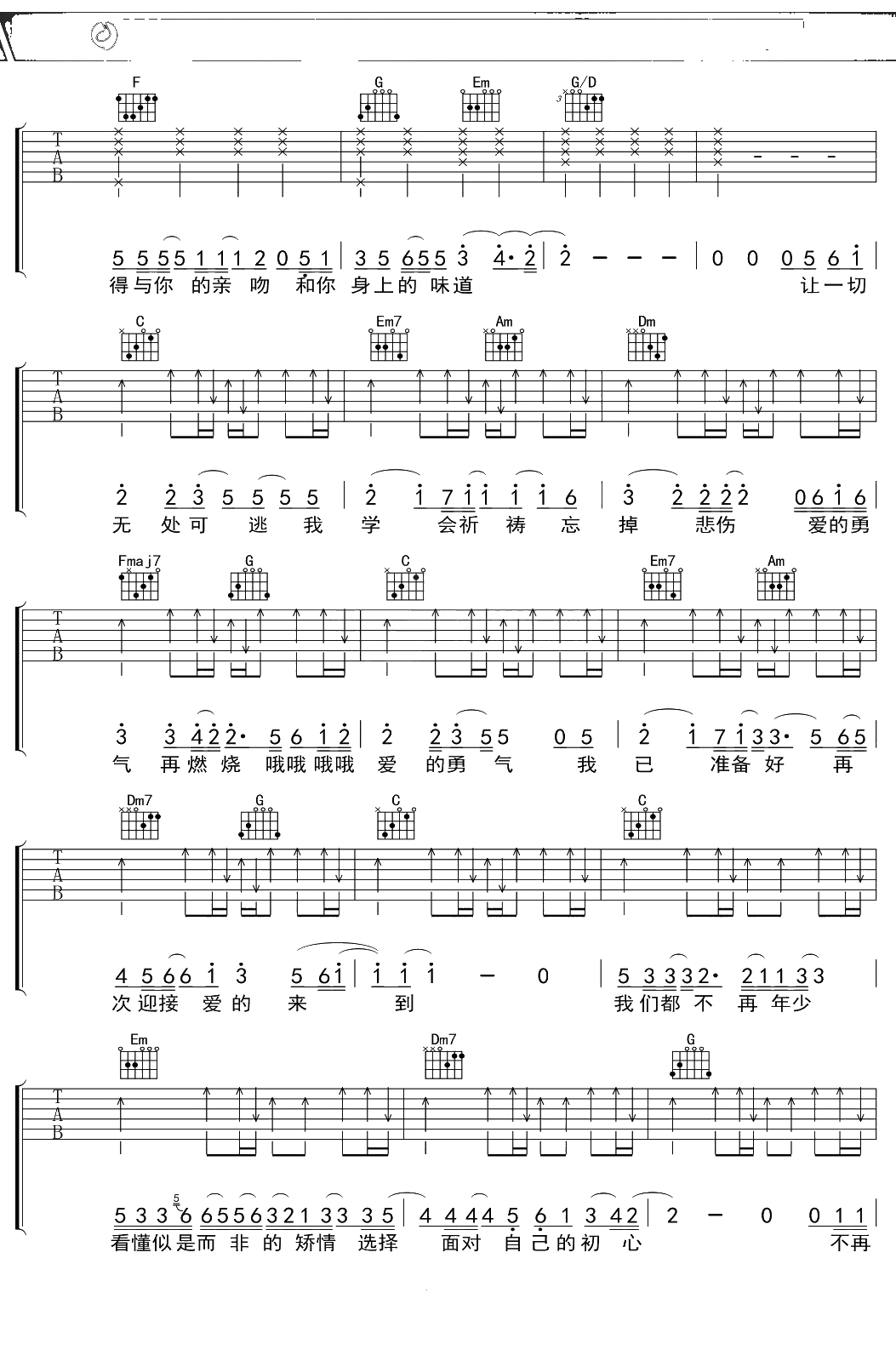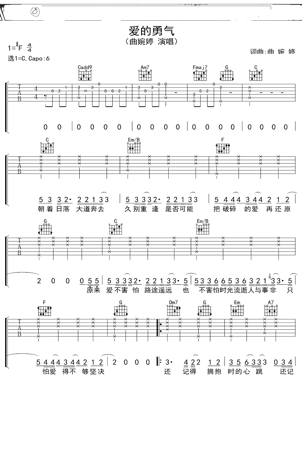 曲婉婷《爱的勇气》吉他谱 C调弹唱六线谱吉他谱