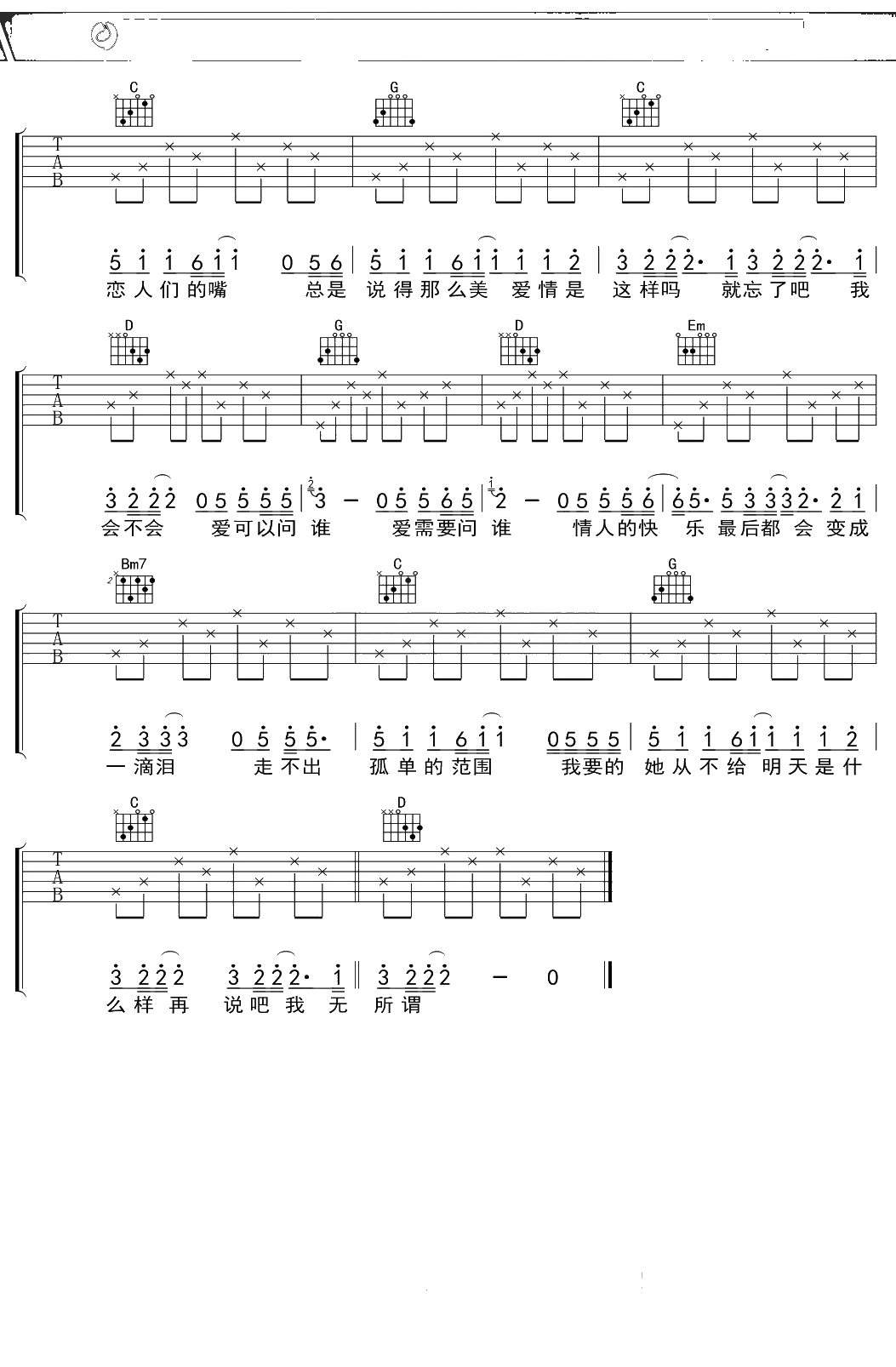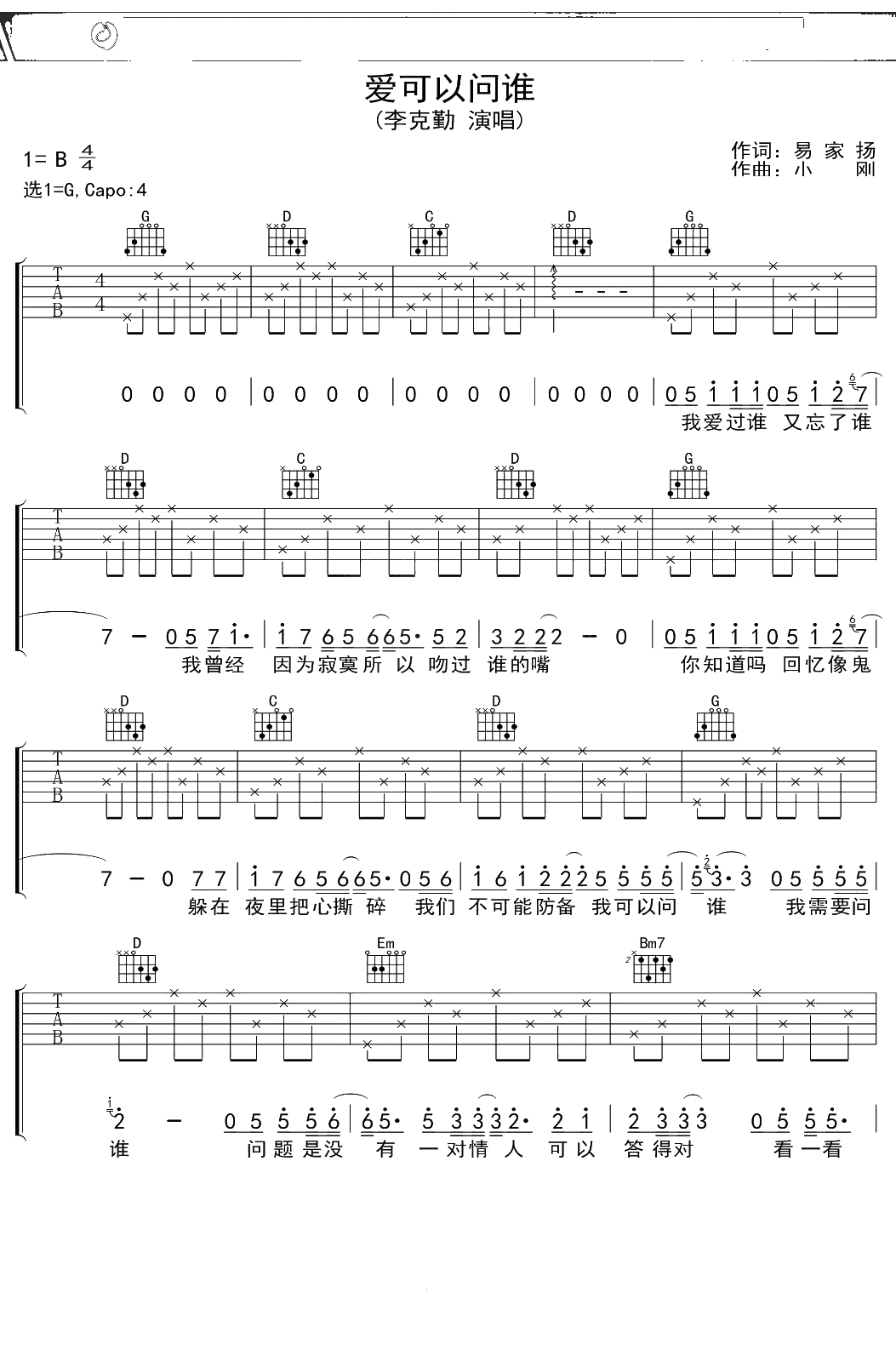 李克勤《爱可以问谁》吉他谱 G调弹唱六线谱吉他谱