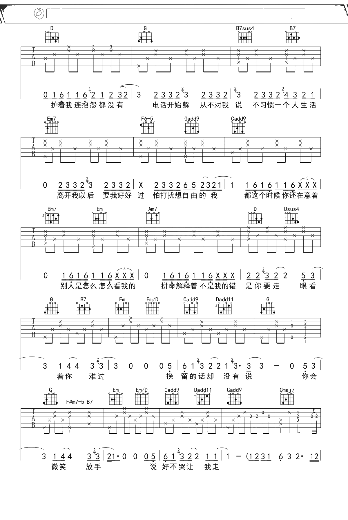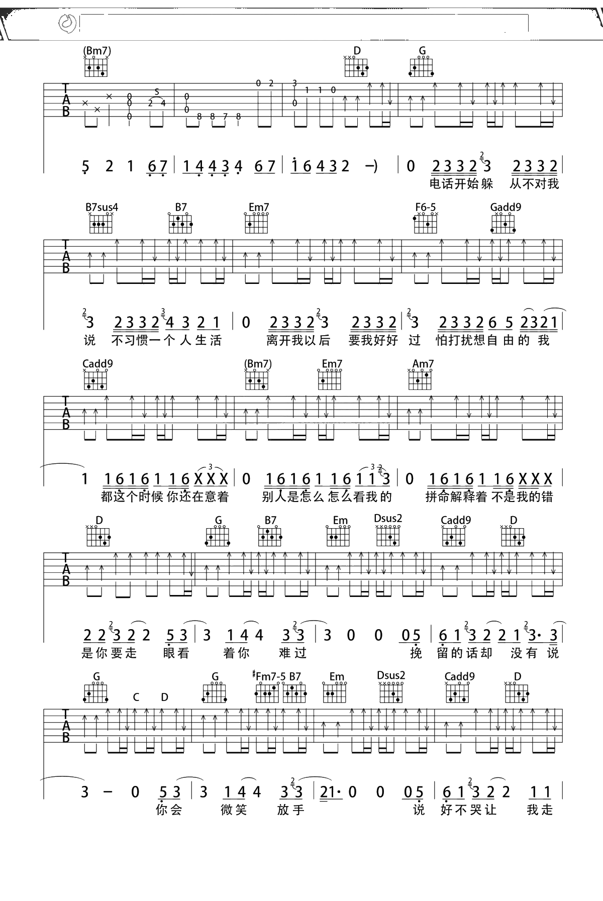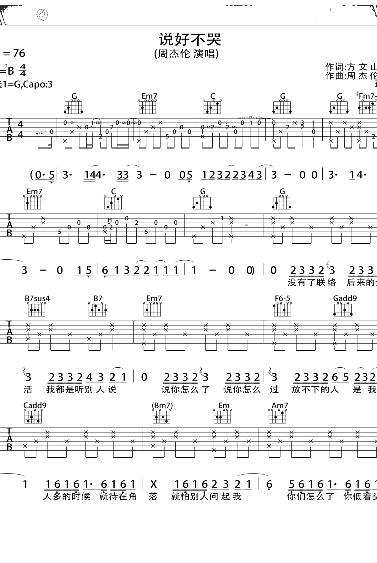周杰伦《说好不哭》吉他谱 弹唱六线谱