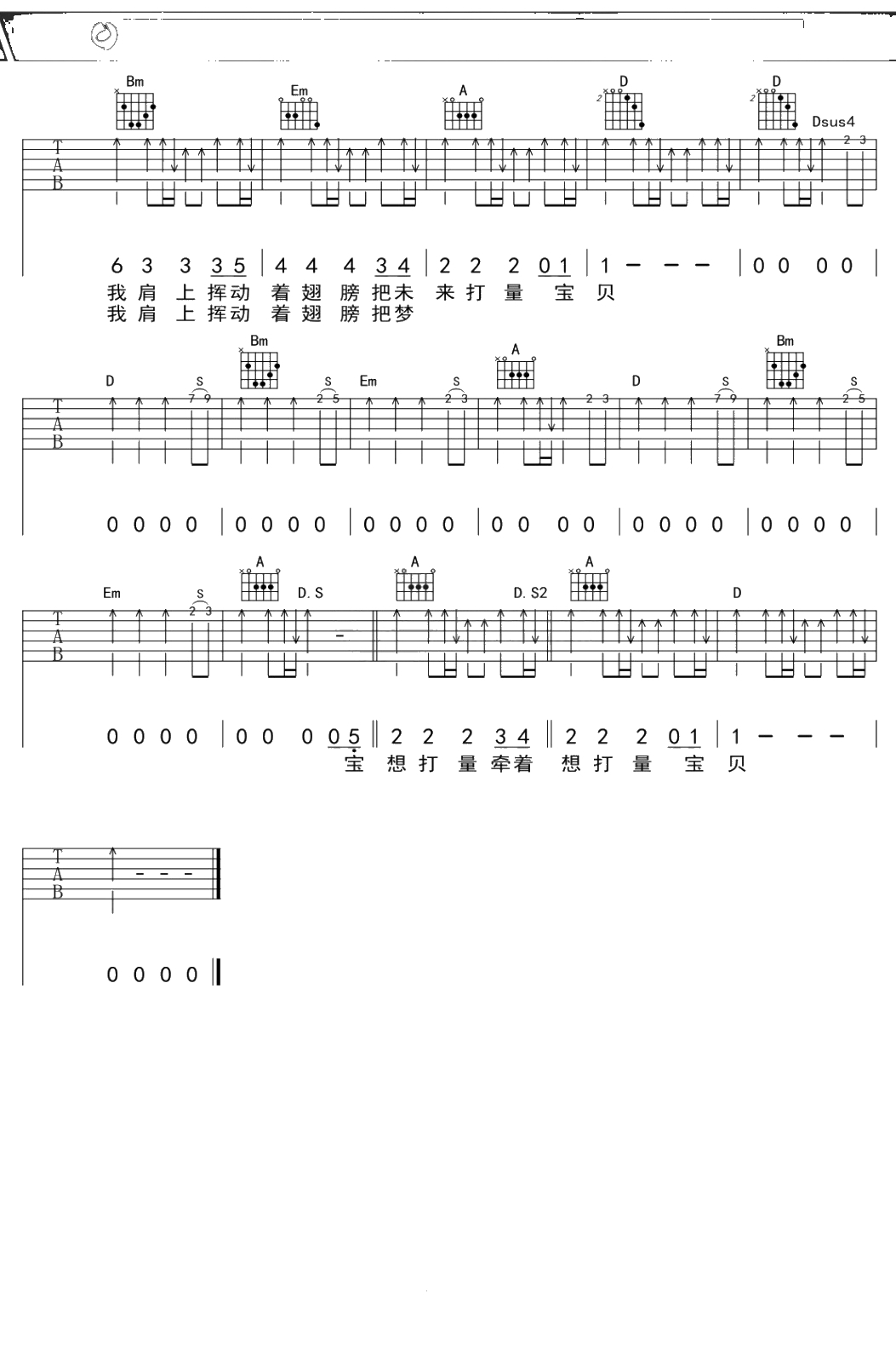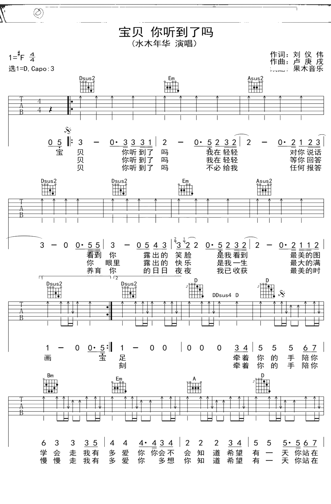 水木年华《宝贝你听到了吗》吉他谱 D调弹唱六线谱
