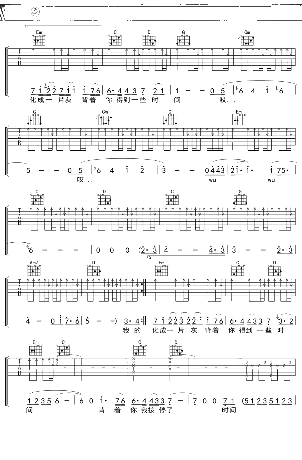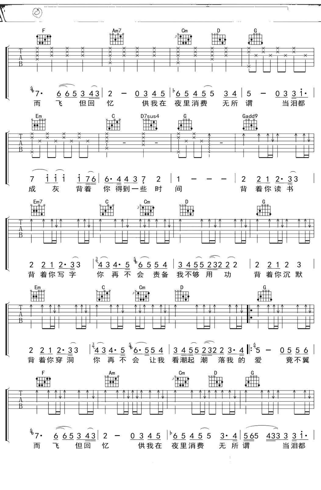 苏打绿《背着你》吉他谱 G调弹唱六线谱