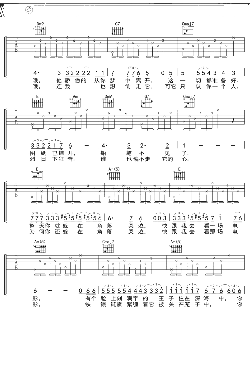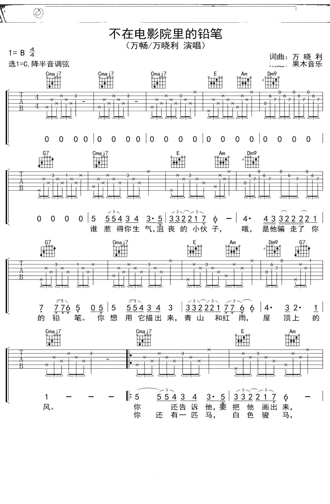 万晓利《不再电影院里的铅笔》吉他谱 C调弹唱六线谱
