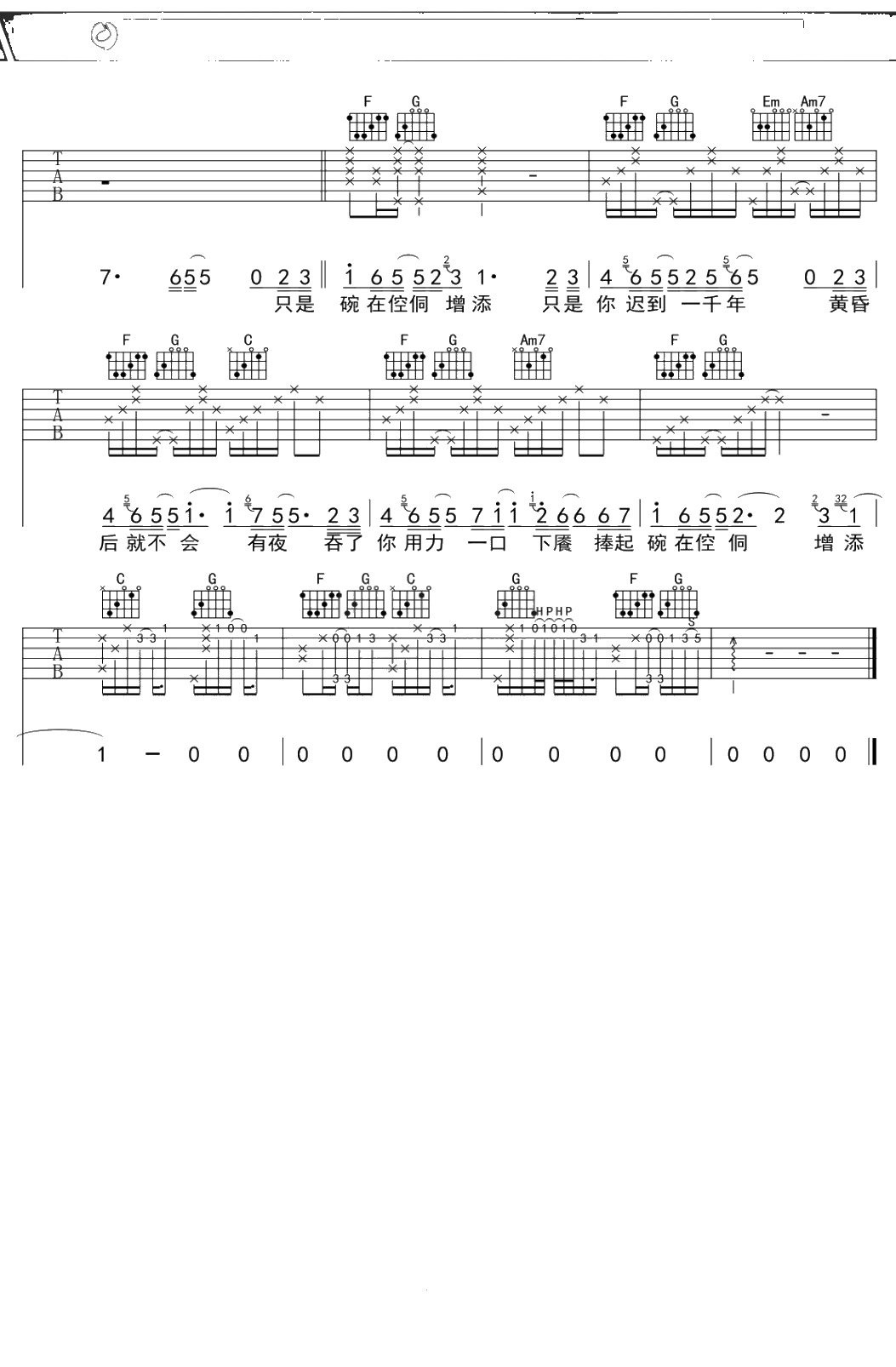 苏打绿《迟到千年》吉他谱 C调弹唱六线谱吉他谱