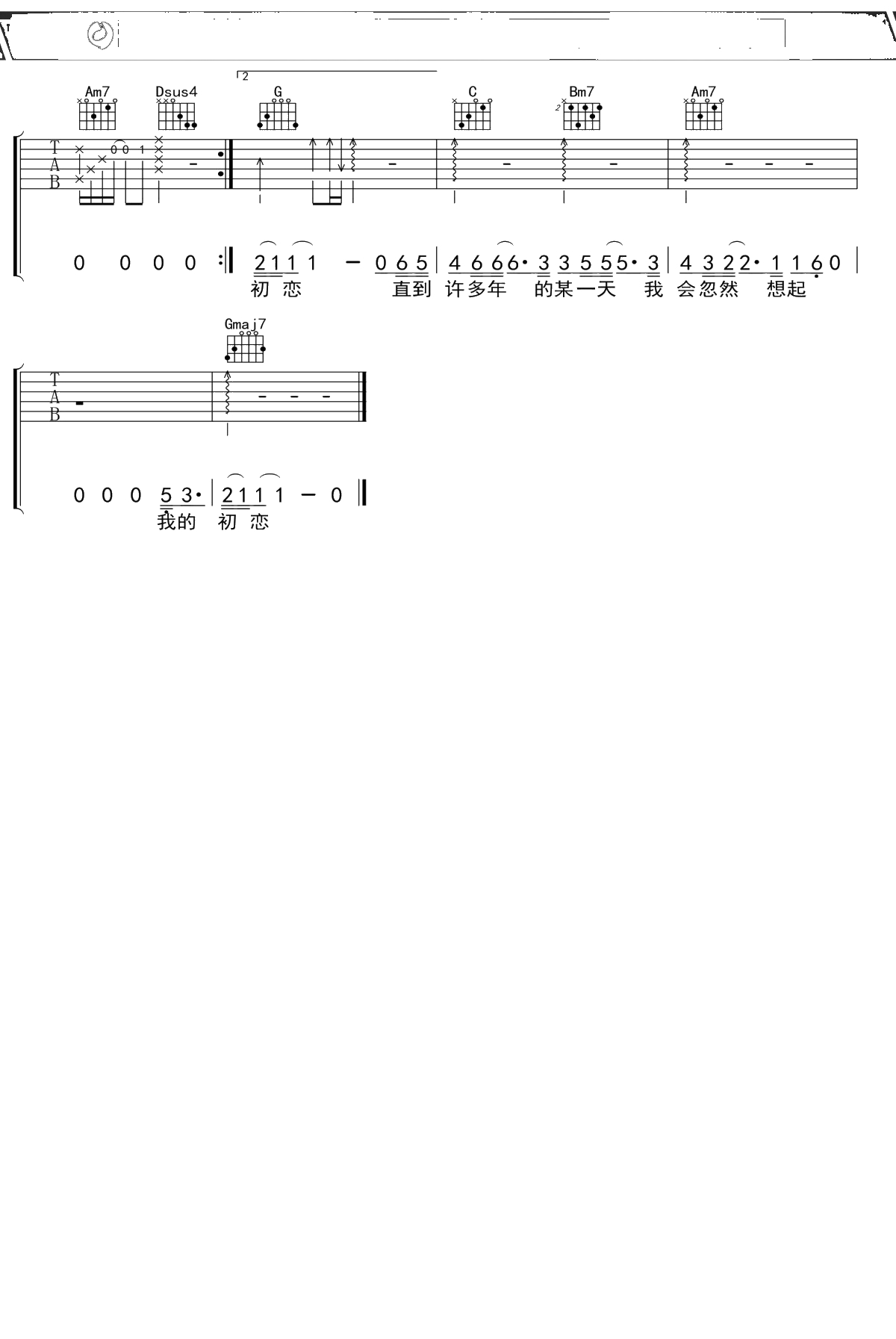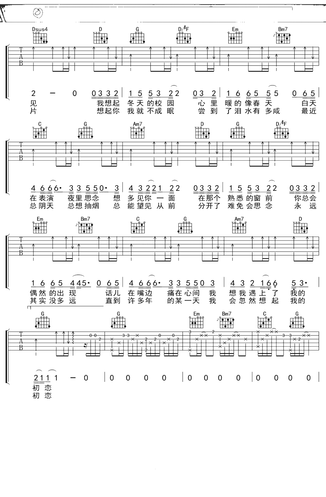 王宝《初恋》吉他谱 G调弹唱六线谱吉他谱