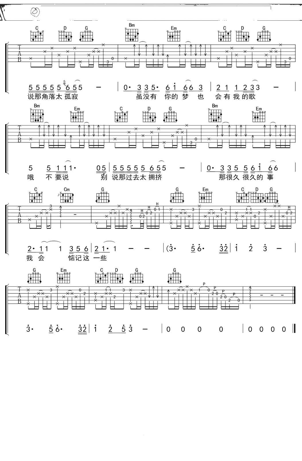 王杰《惦记这一些》吉他谱 G调弹唱六线谱吉他谱