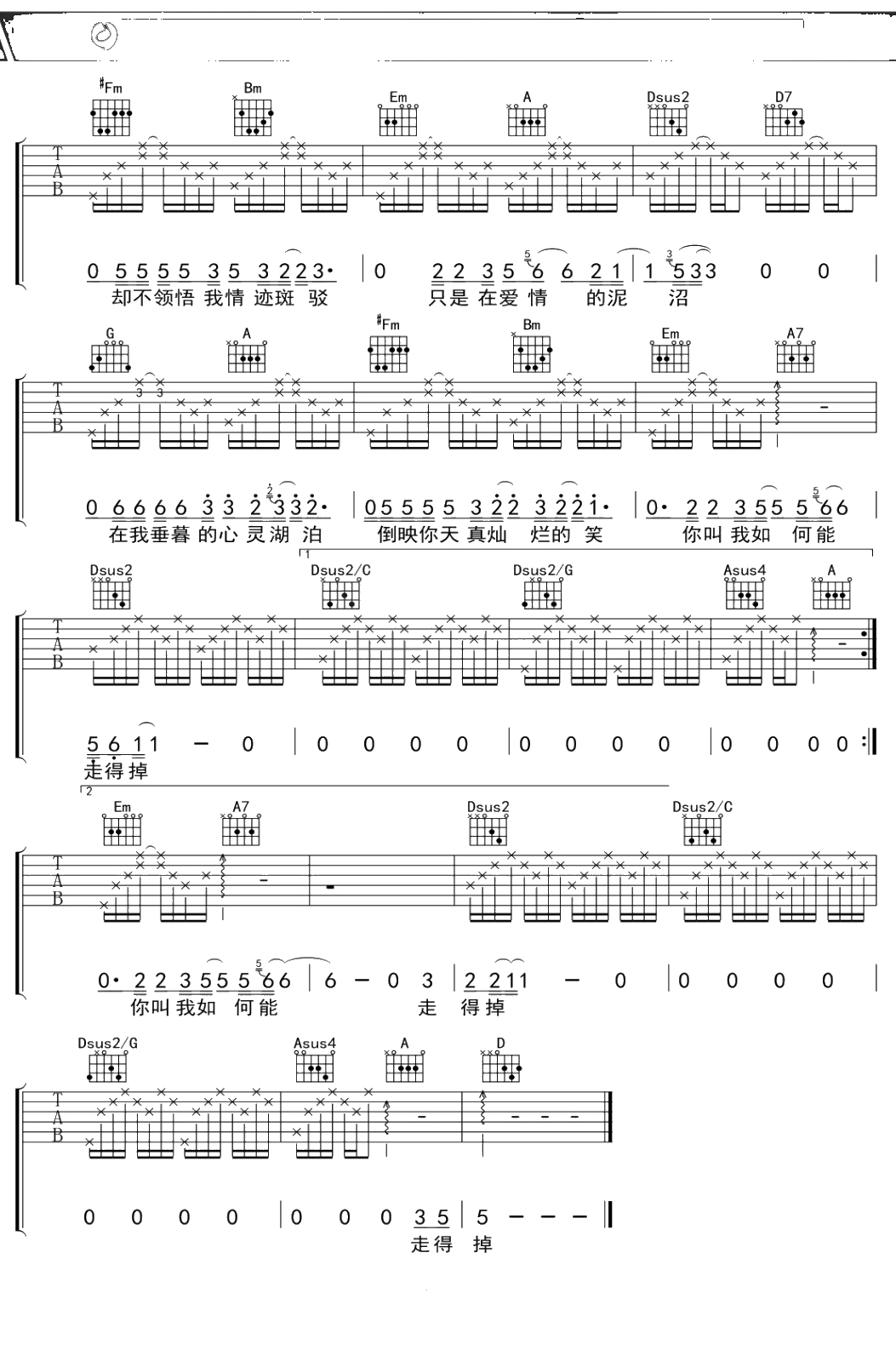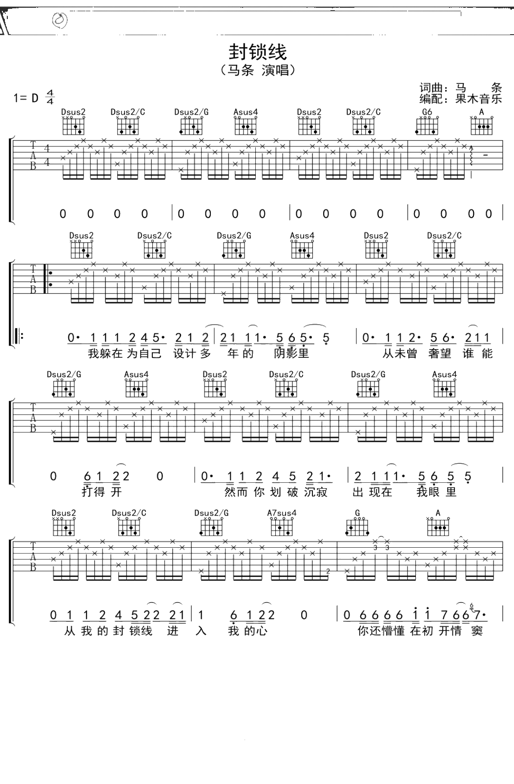 马条《封锁线》吉他谱 D调弹唱六线谱