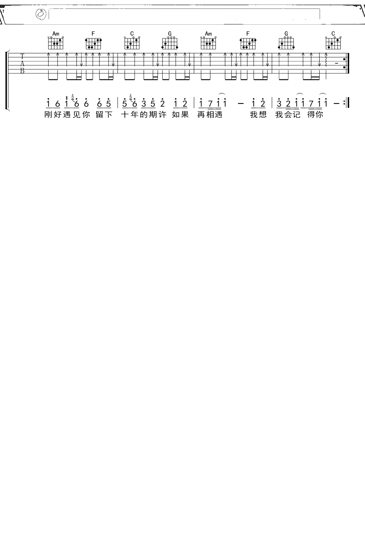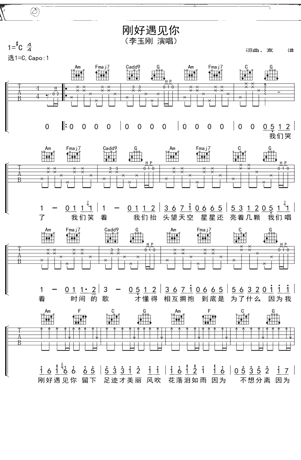 李玉刚《刚好遇见你》吉他谱 C调弹唱六线谱吉他谱