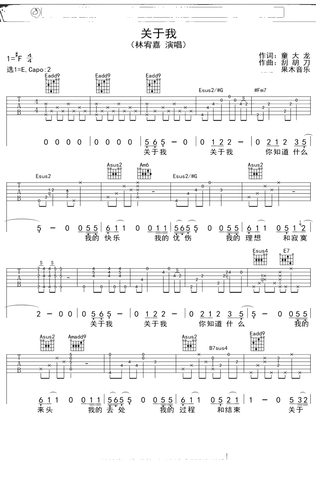 林宥嘉《关于我》吉他谱 弹唱六线谱