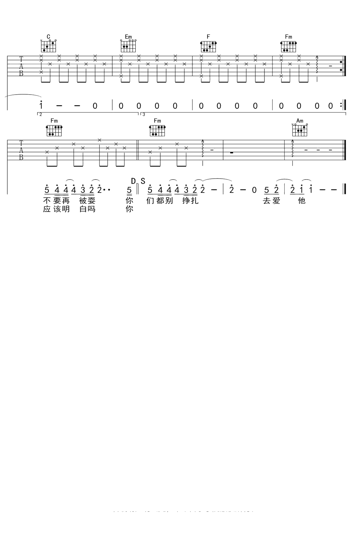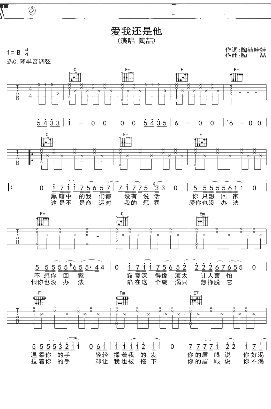 陶喆《爱我还是他》吉他谱 C调弹唱六线谱吉他谱