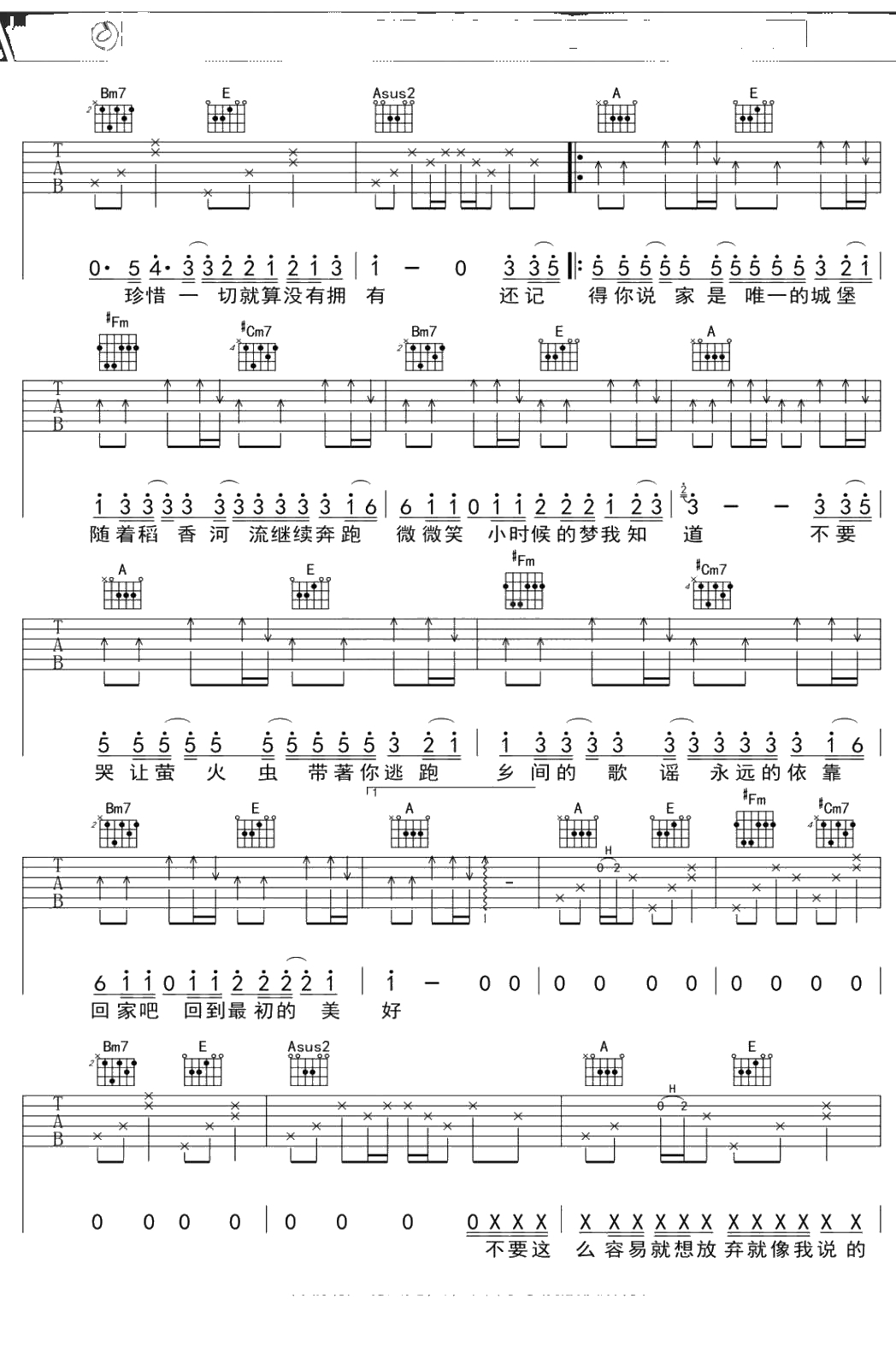 周杰伦《稻香》吉他谱 A调弹唱六线谱吉他谱