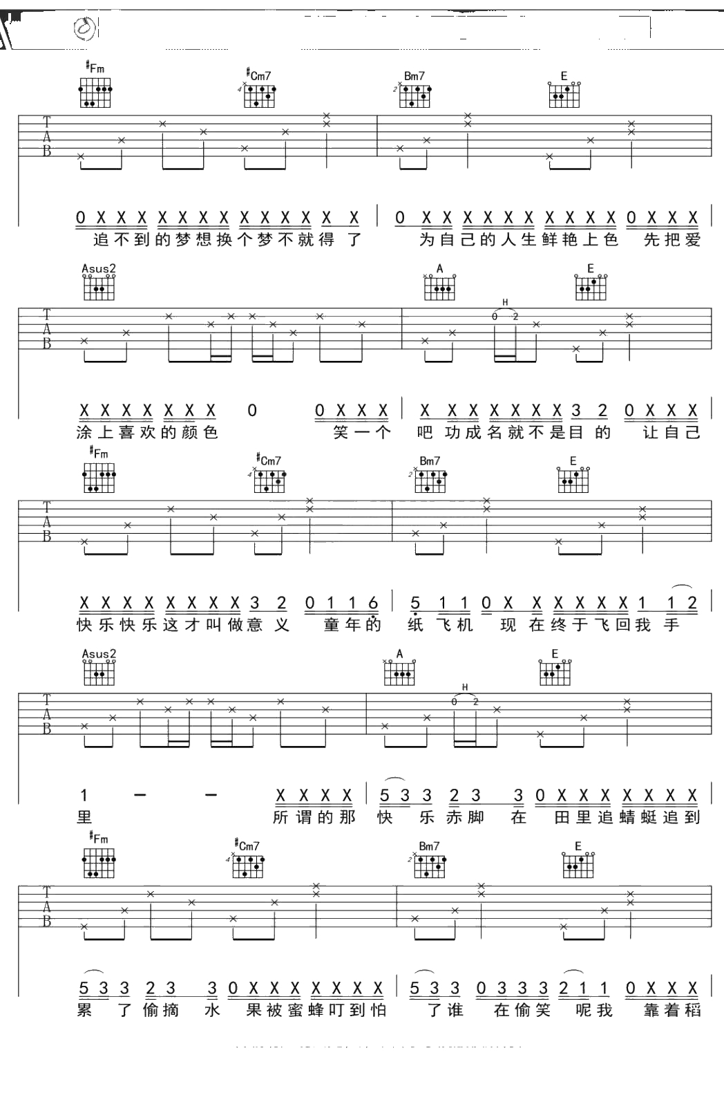 周杰伦《稻香》吉他谱 A调弹唱六线谱
