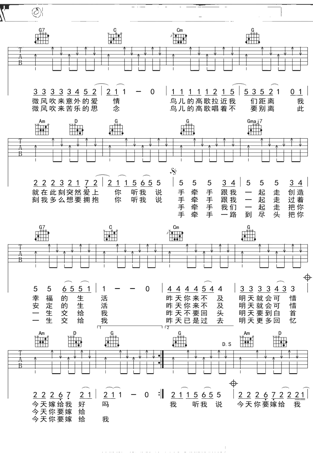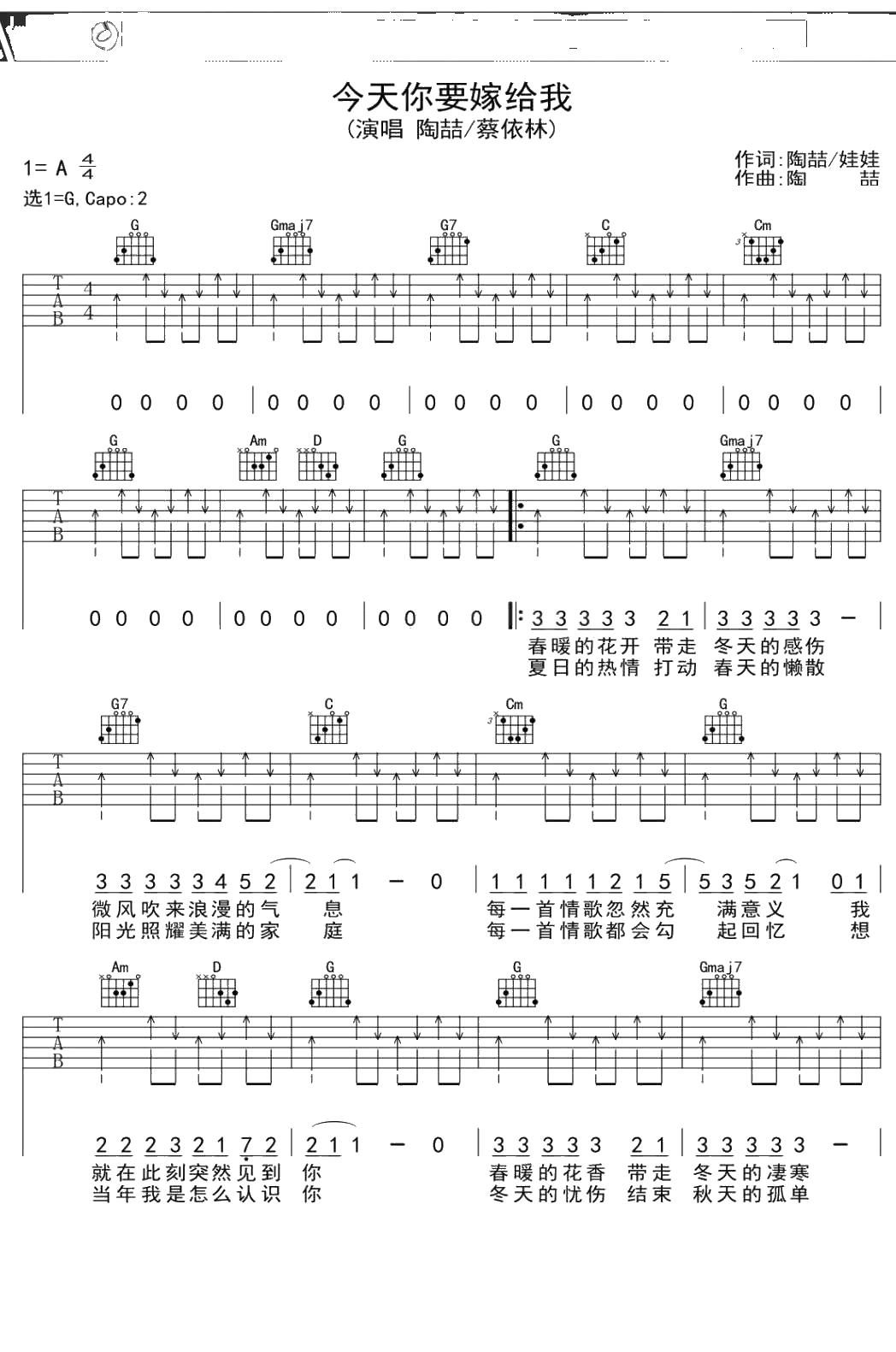 《今天你要嫁给我》吉他谱 陶喆/蔡依林 G调弹唱六线谱吉他谱