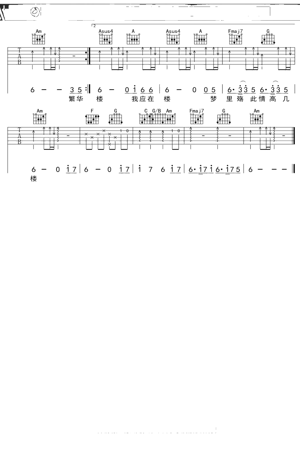 李袁杰《离人愁》吉他谱 C调弹唱六线谱吉他谱