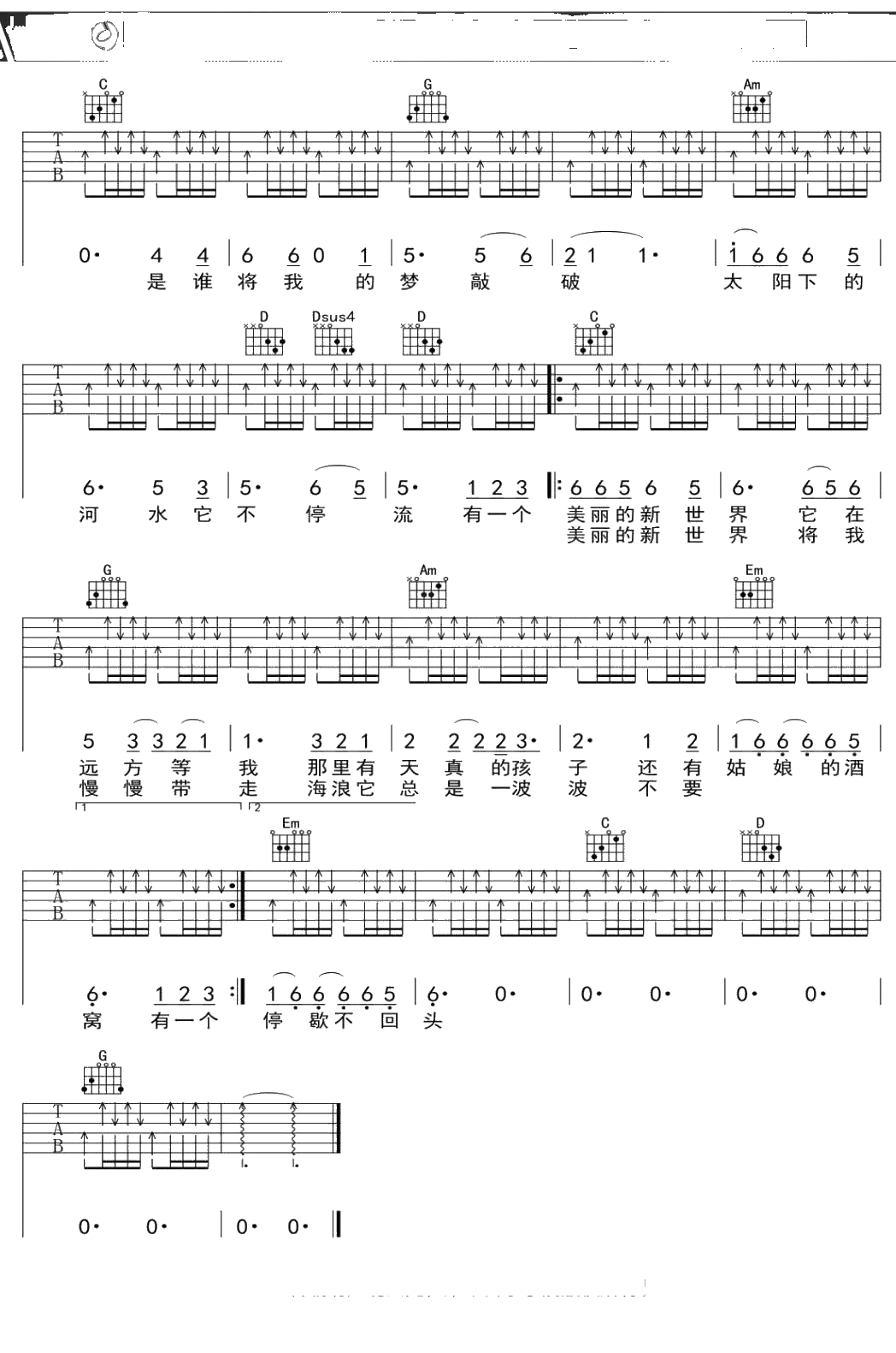 伍佰《美丽新世界》吉他谱 G调弹唱六线谱吉他谱