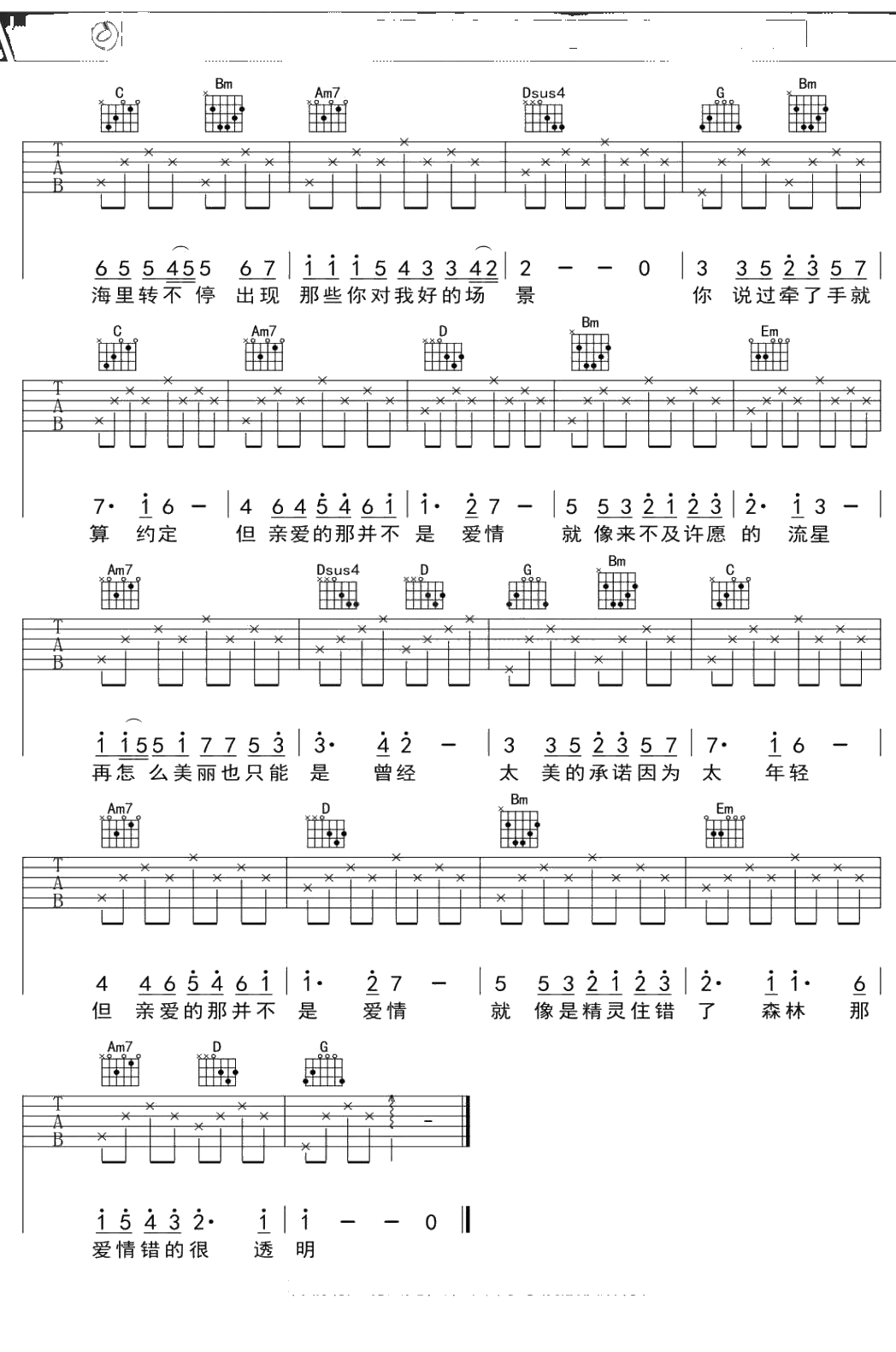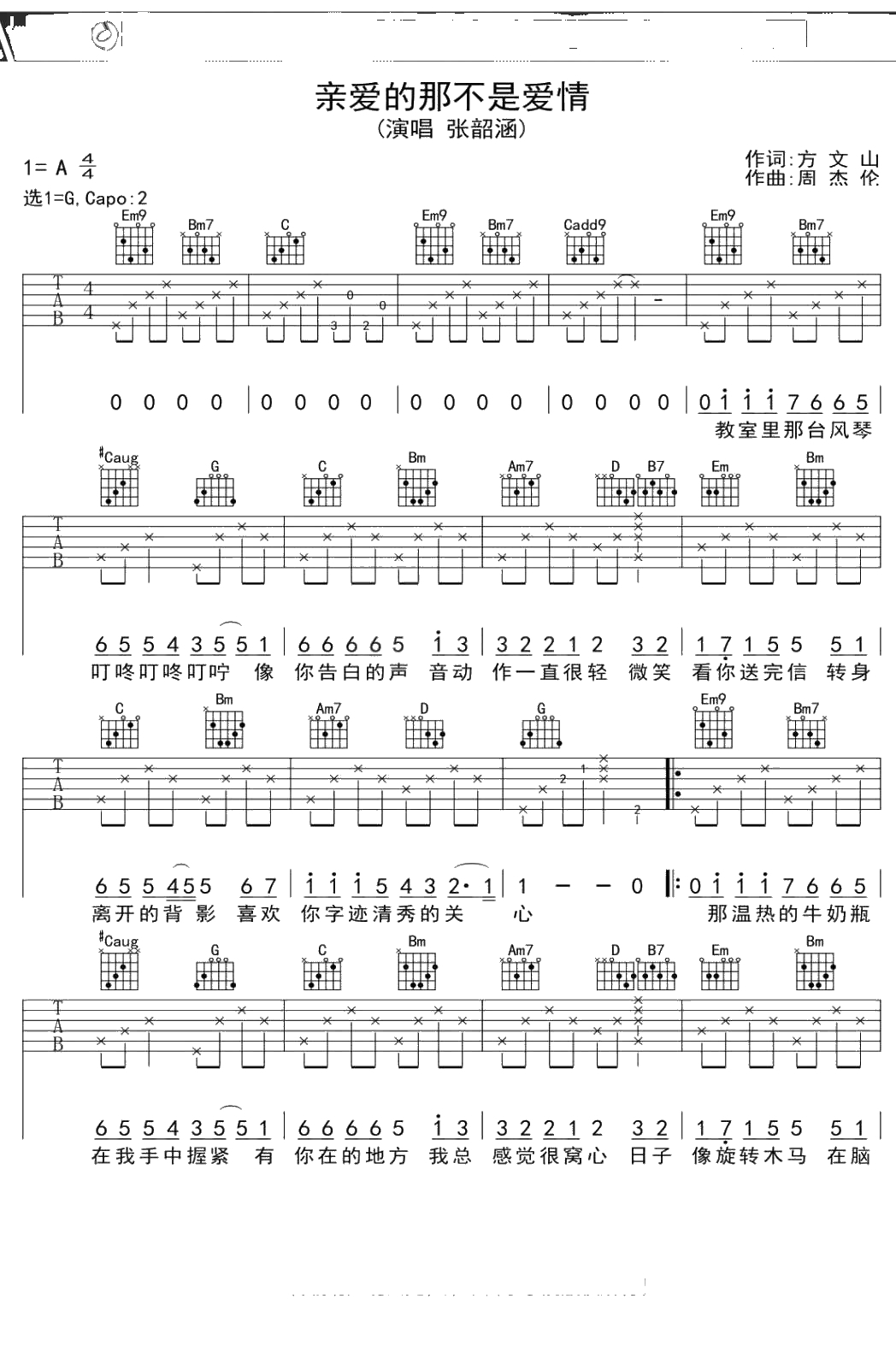 张韶涵《亲爱的那不是爱情》吉他谱 G调弹唱六线谱吉他谱