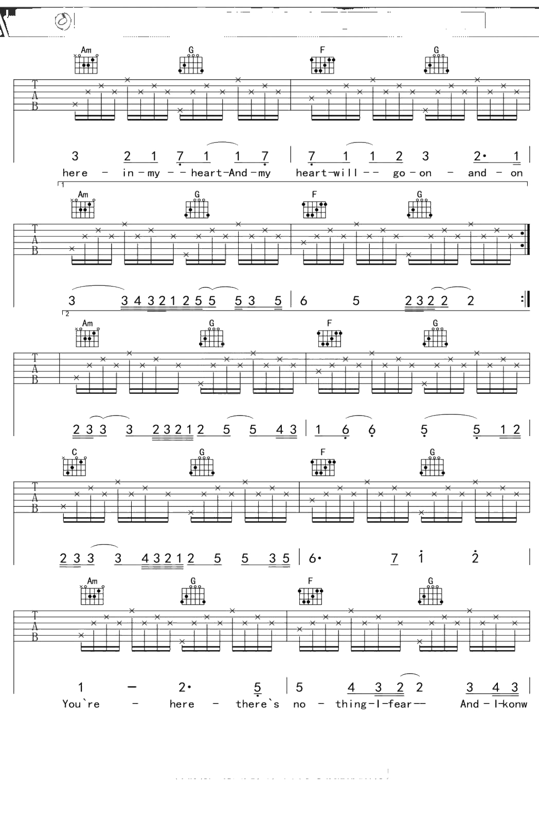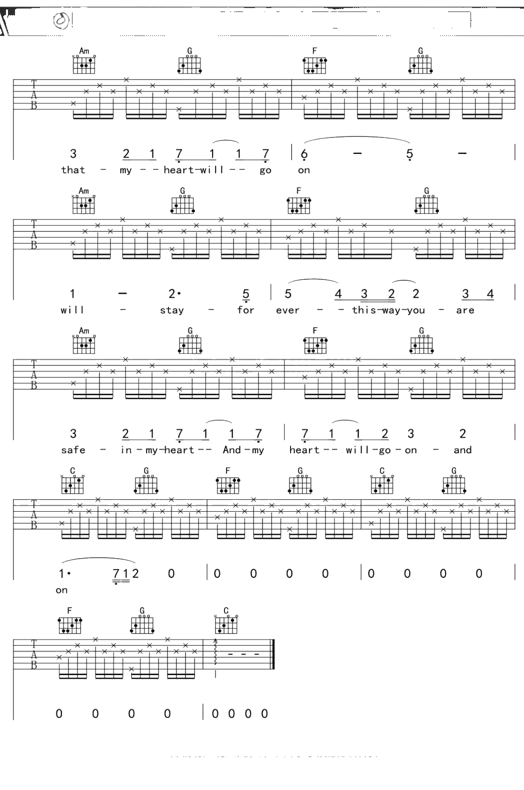 席琳迪翁《My heart well go on》吉他谱 C调弹唱六线谱