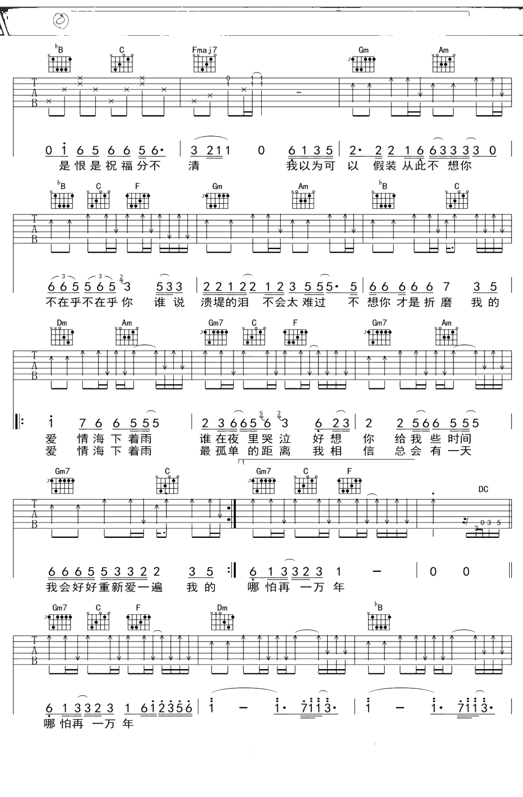黄品源《孤单爱琴海》吉他谱 C调弹唱六线谱吉他谱