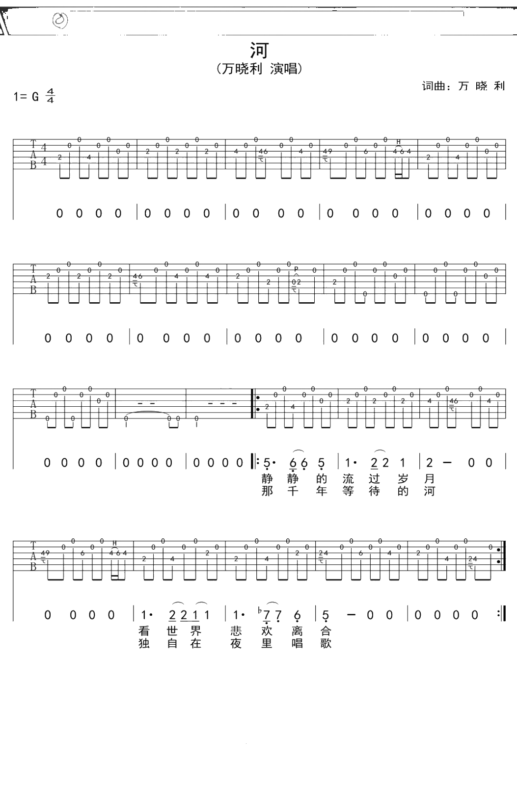 万晓利《河》吉他谱 G调弹唱六线谱吉他谱