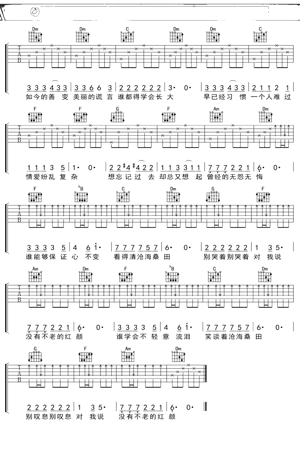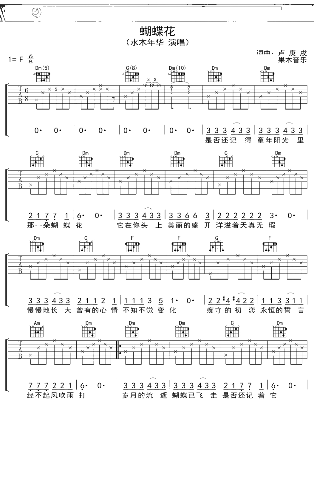 水木年华《蝴蝶花》吉他谱 F调弹唱六线谱吉他谱
