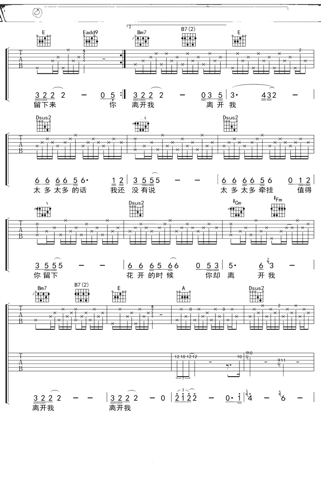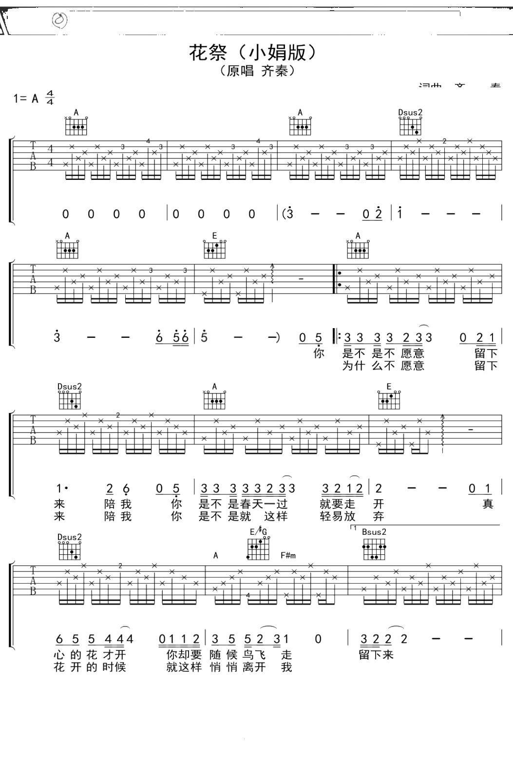 齐秦《花祭》吉他谱 A调弹唱六线谱吉他谱
