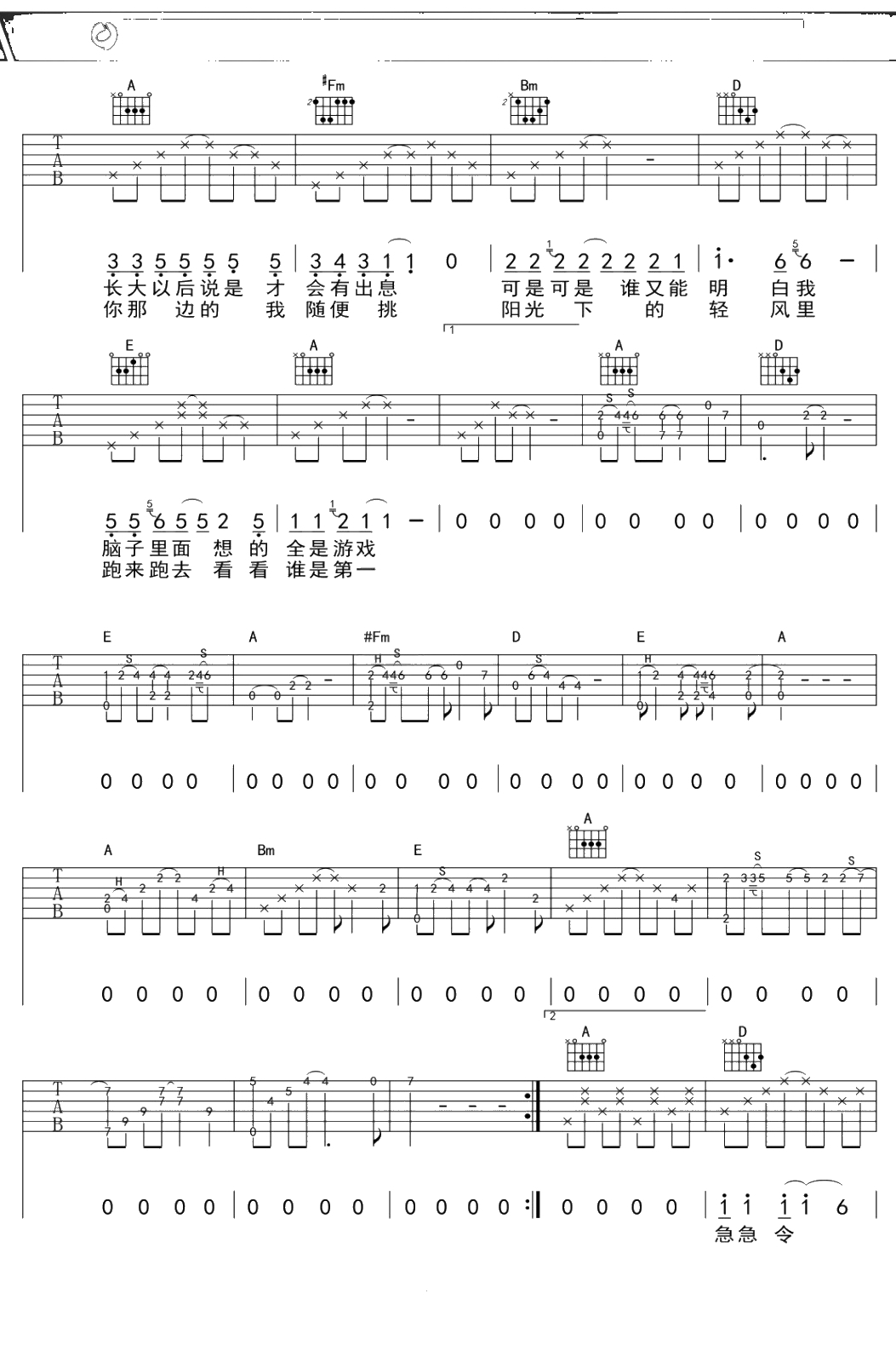 刘东明《急急令》吉他谱 A调弹唱六线谱