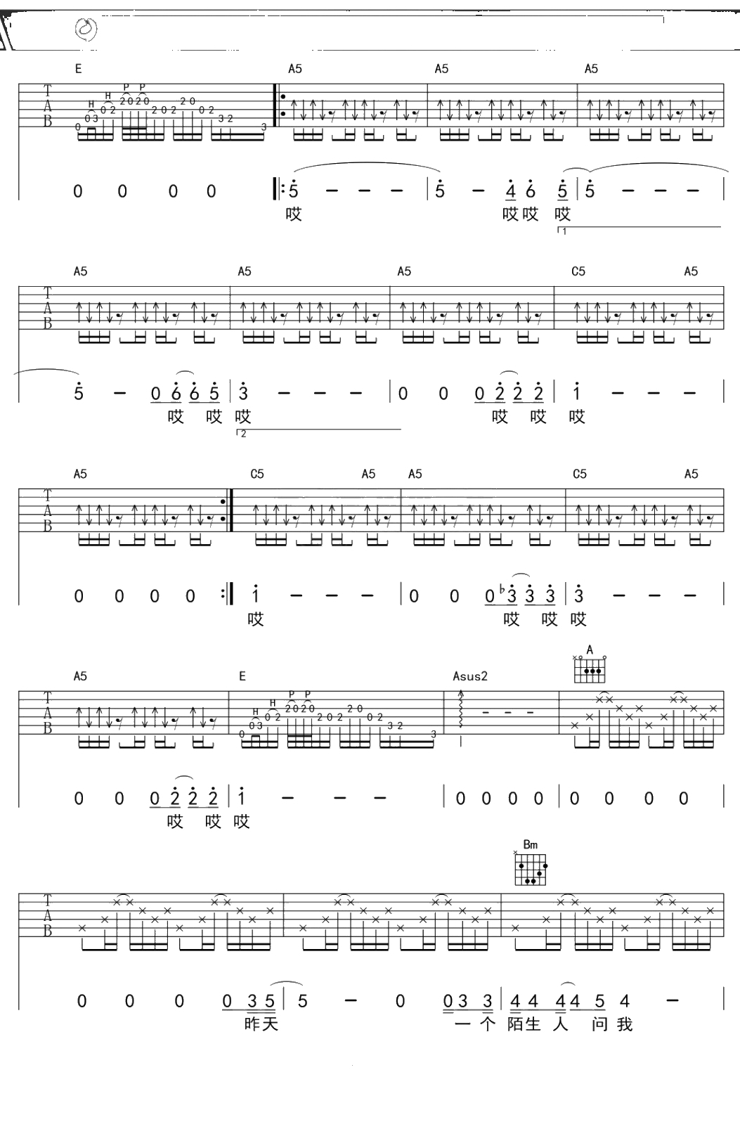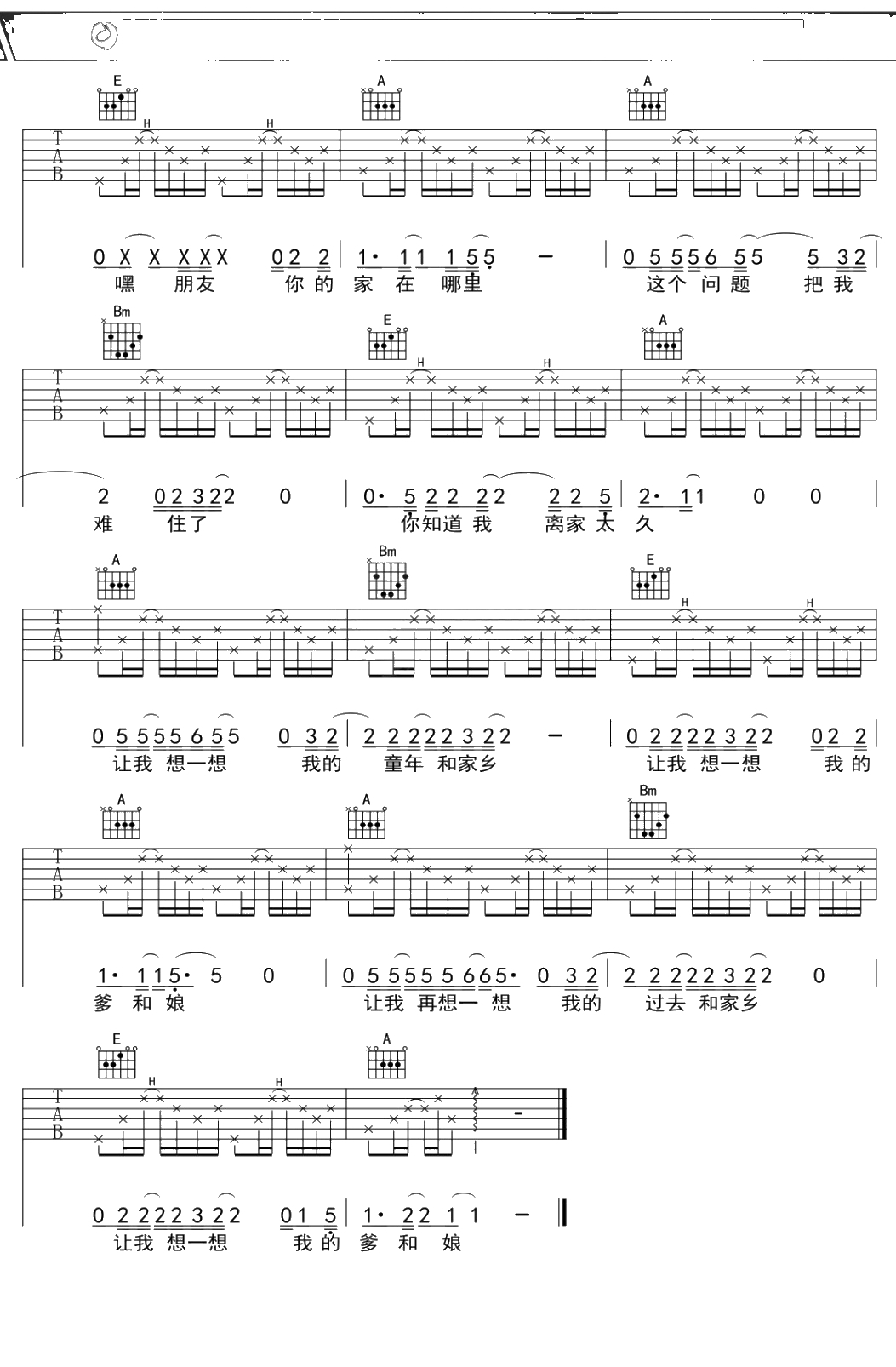 李志《家乡》吉他谱 E调弹唱六线谱吉他谱