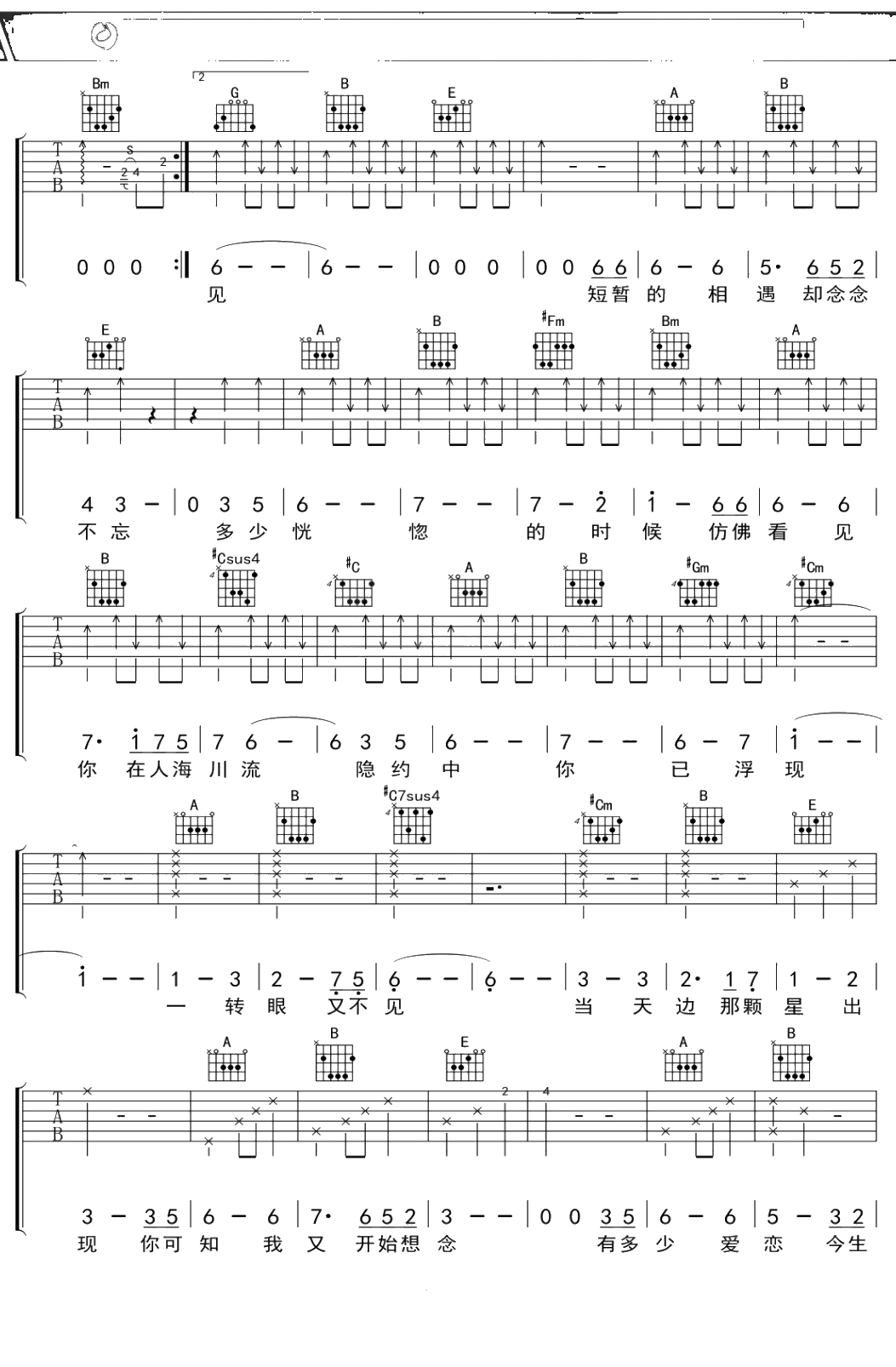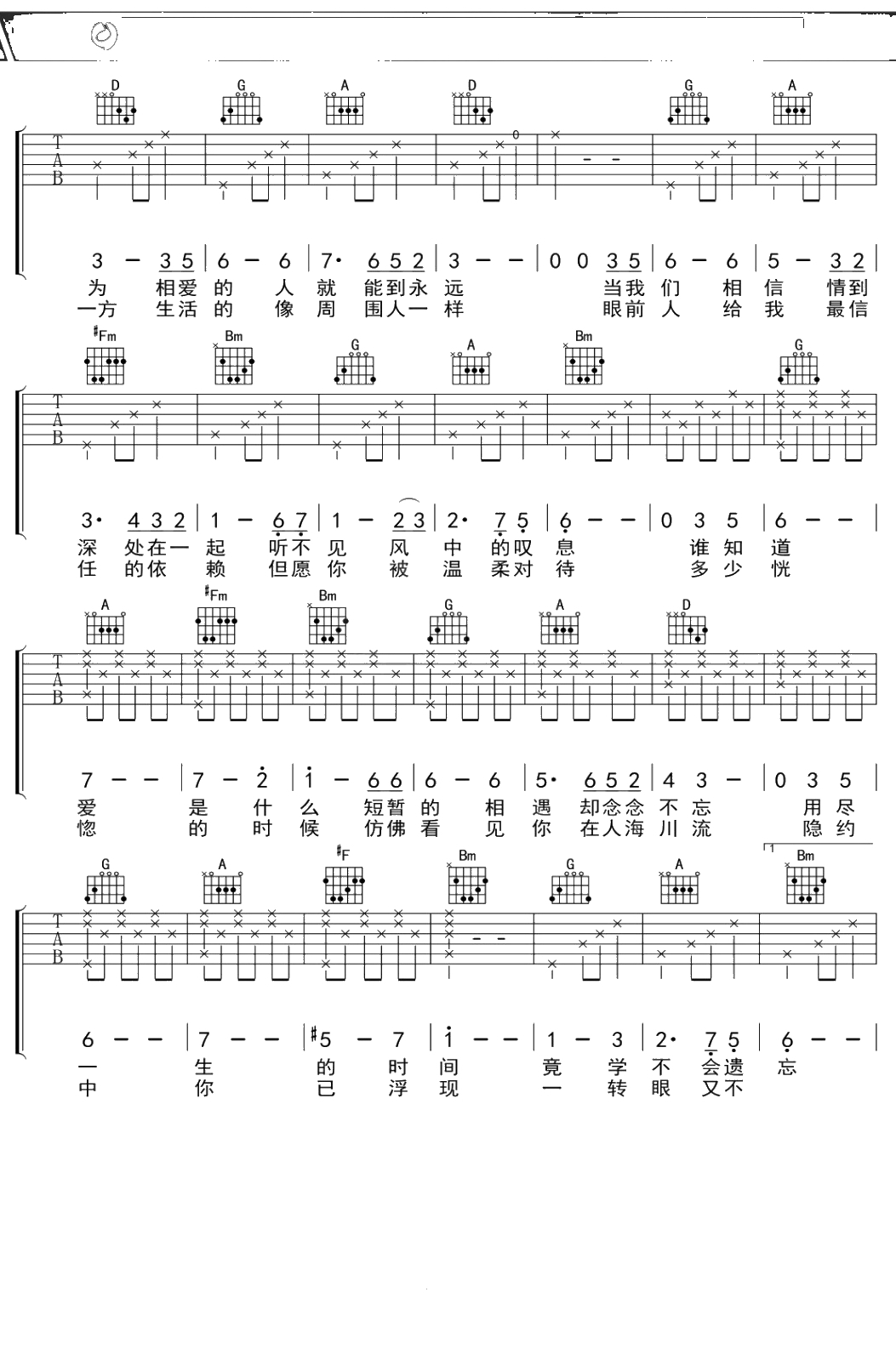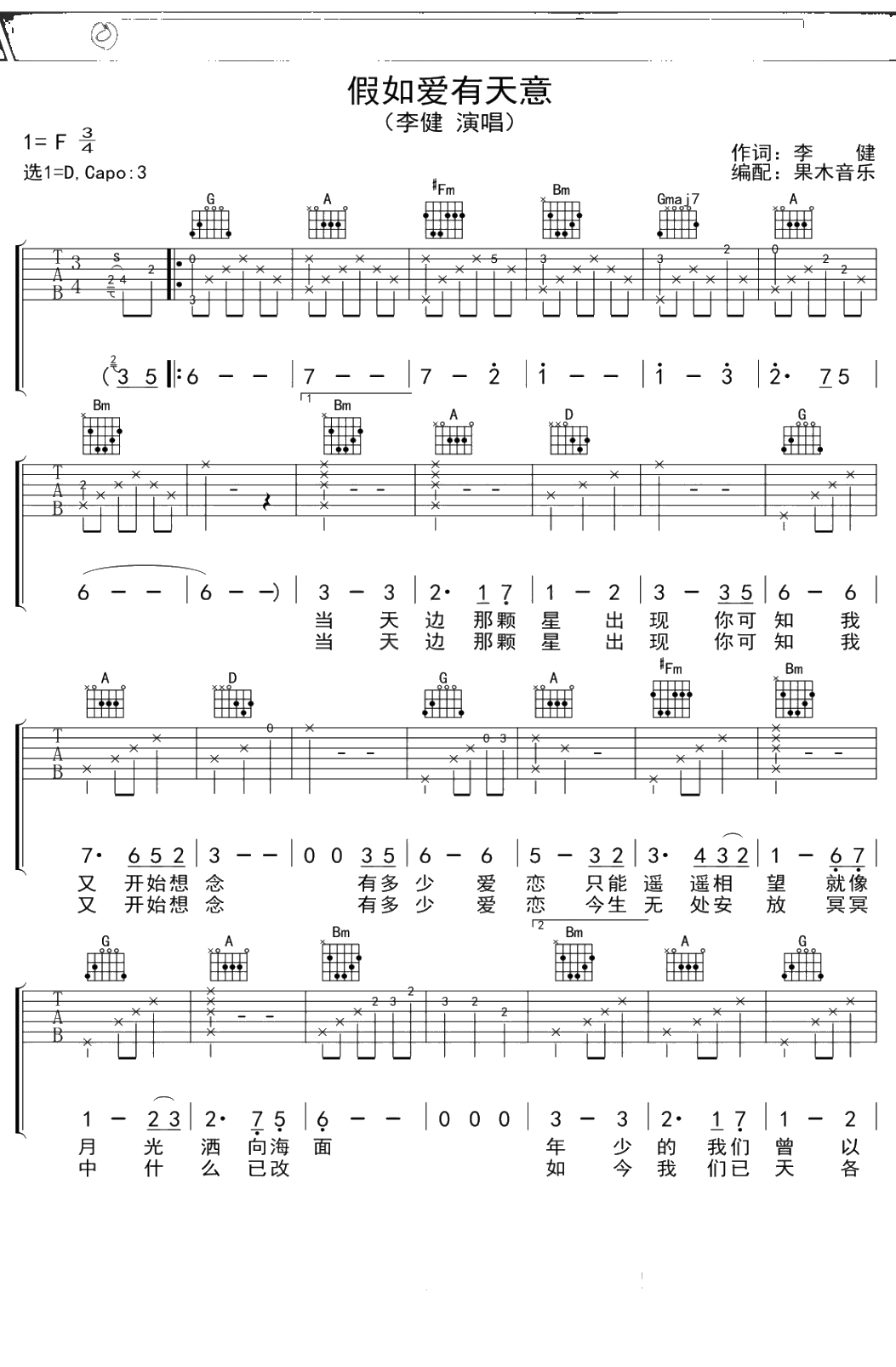 李健《假如爱有天意》吉他谱 D调弹唱六线谱吉他谱