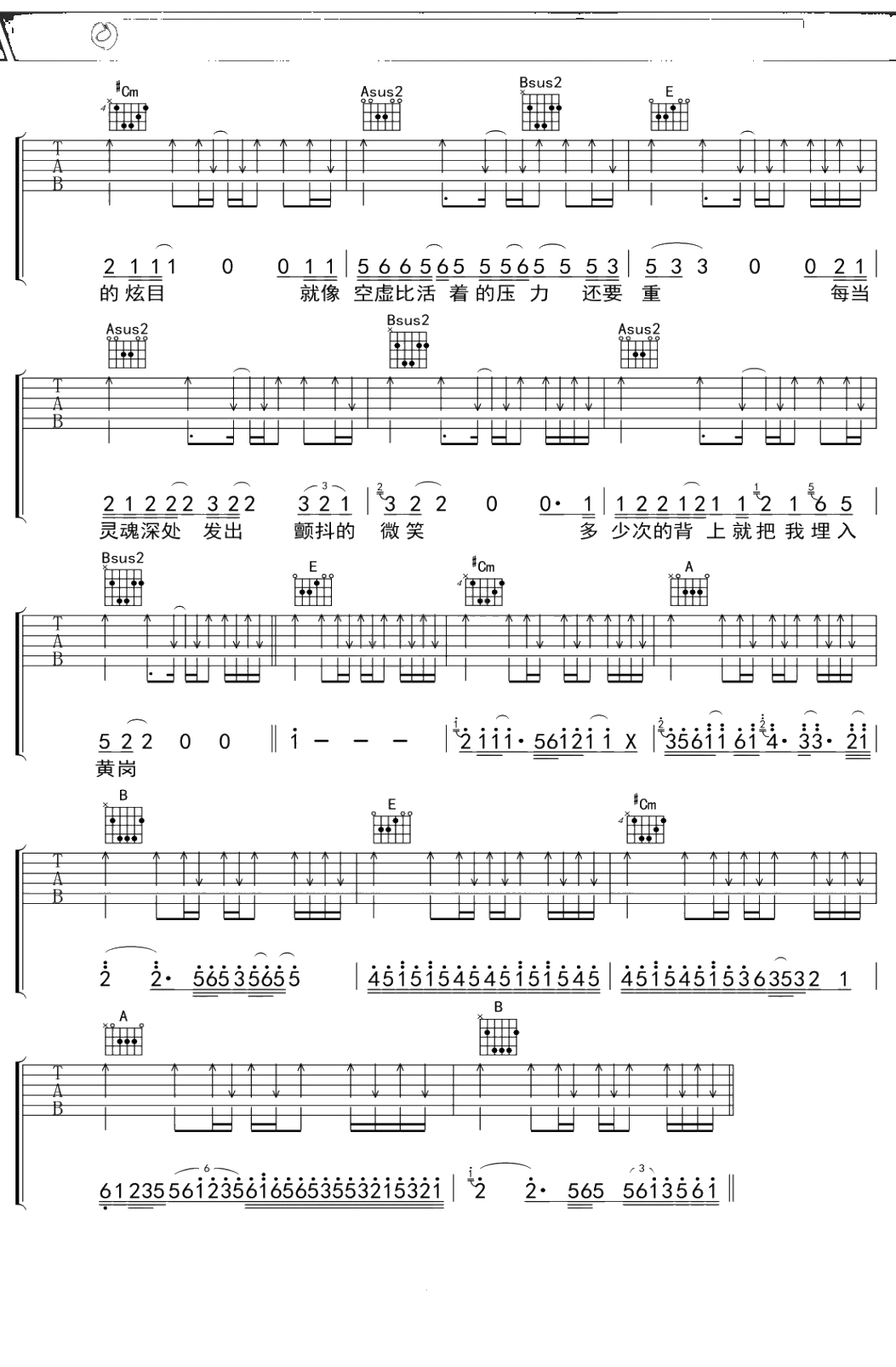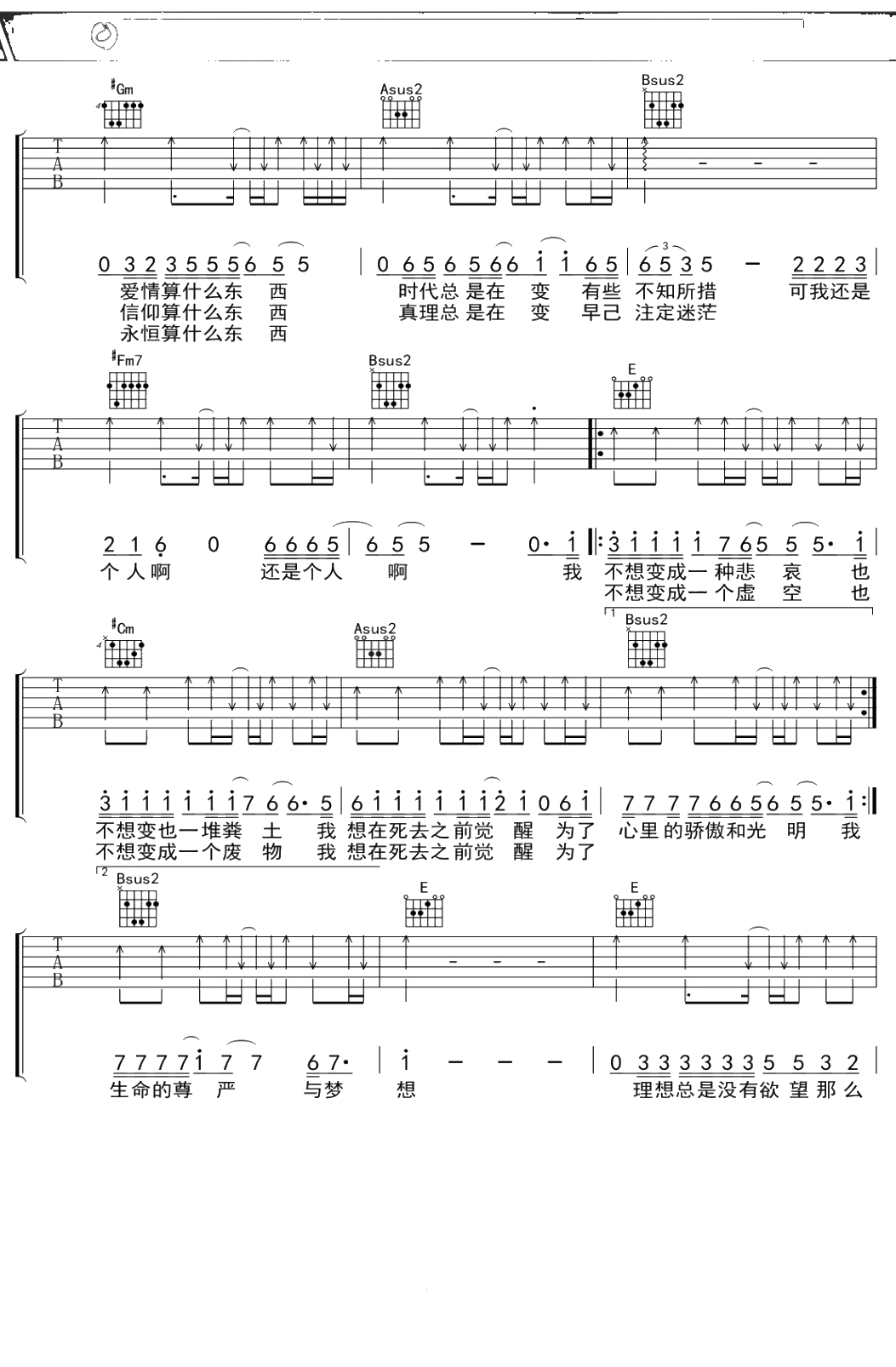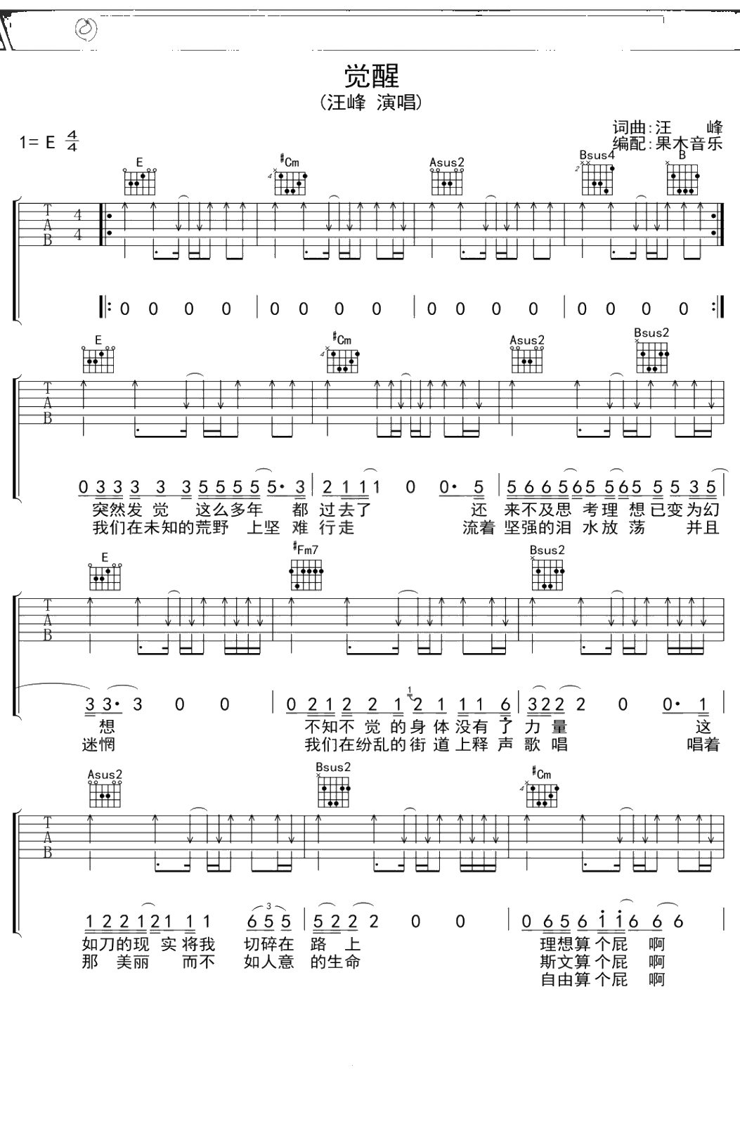 汪峰《觉醒》吉他谱 E调弹唱六线谱吉他谱