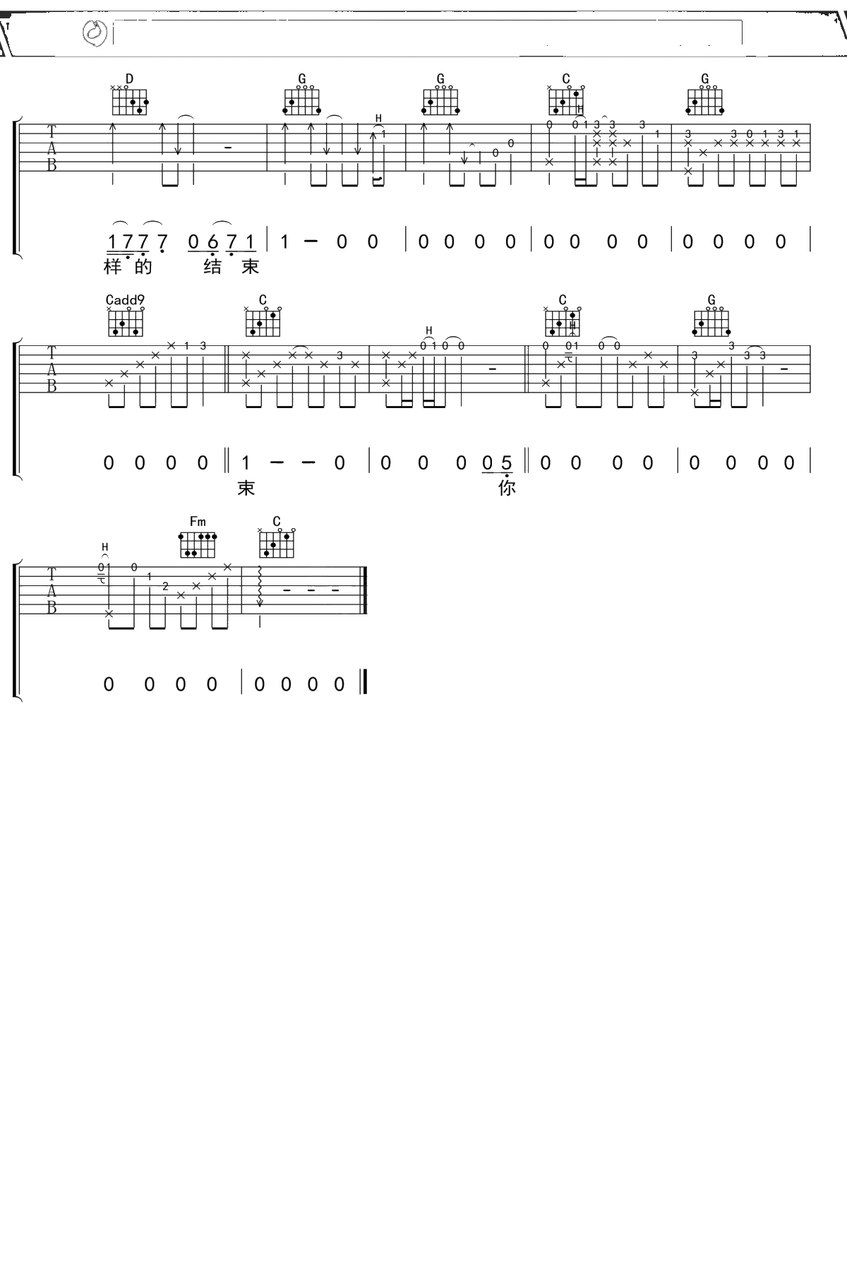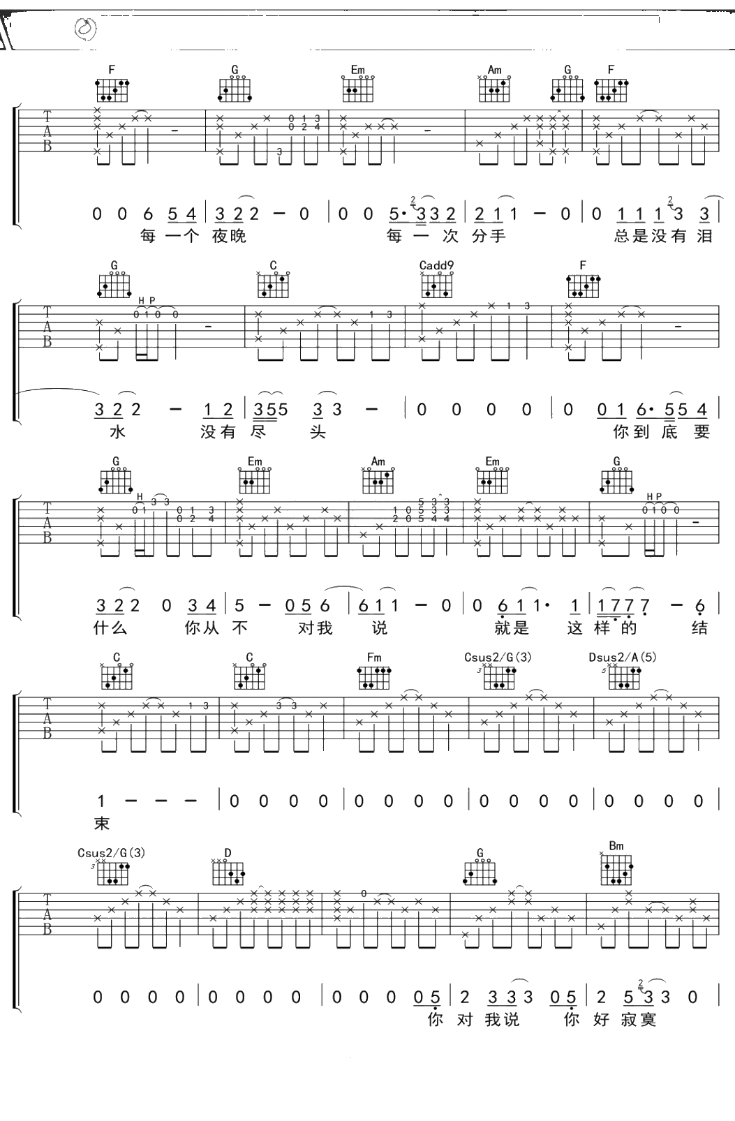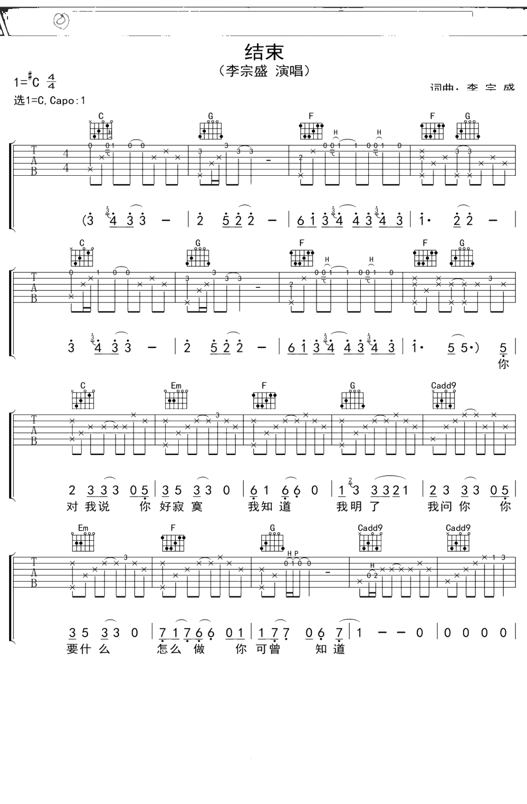 李宗盛《结束》吉他谱 C调弹唱六线谱吉他谱